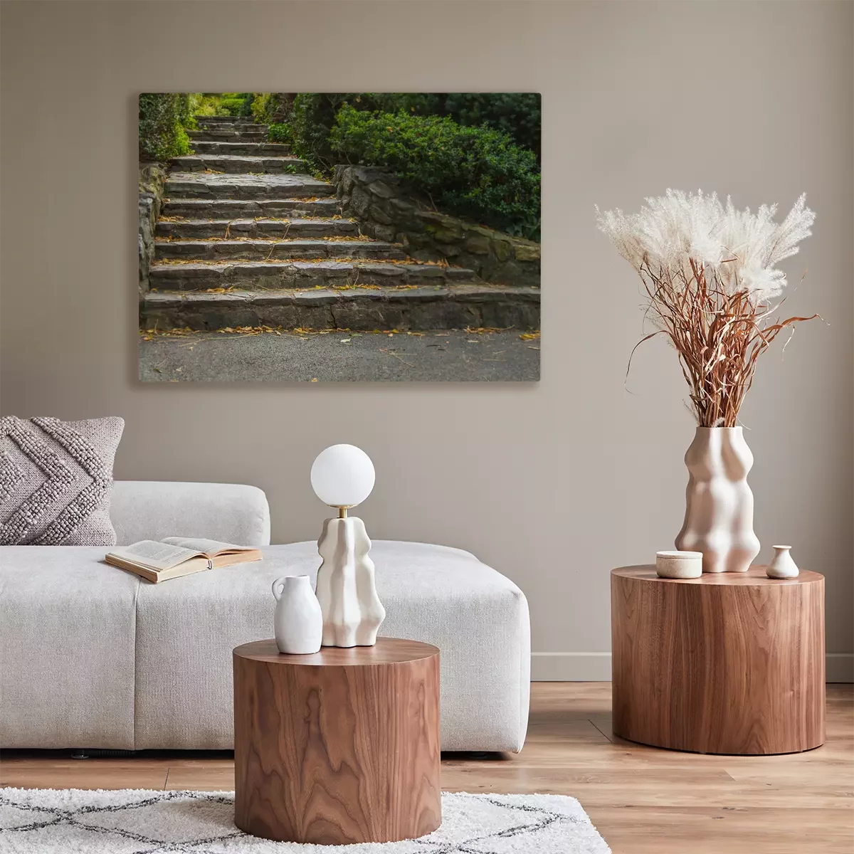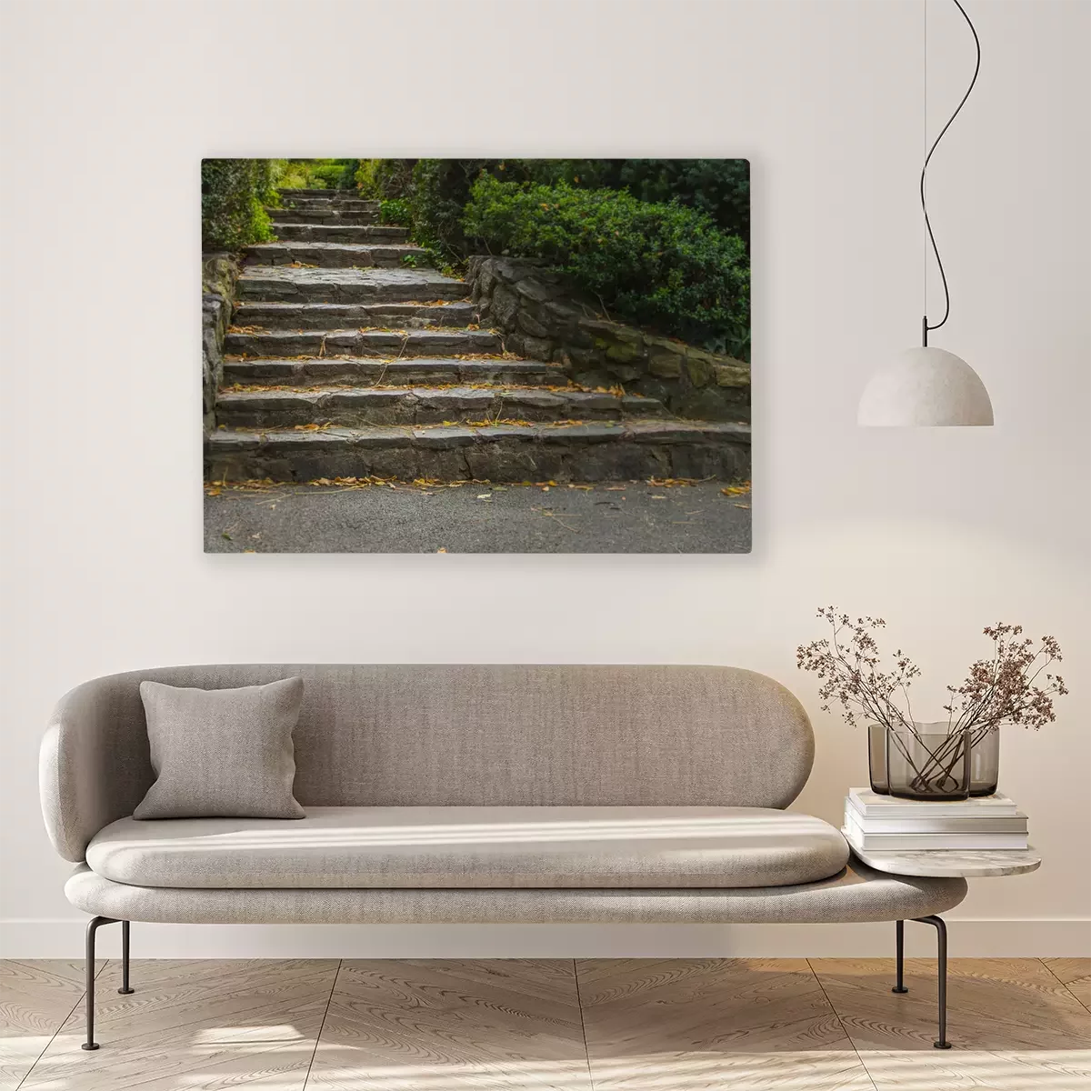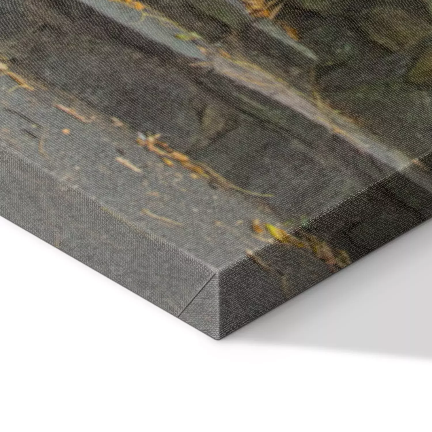 De print wordt aangebracht op hoogwaardig canvas dat op een schildersweefgetouw (spieraam) wordt gespannen. Omdat de print de zijranden bedekt, hoeft het ontwerp niet met een extra kader te worden omlijst. Wij raden ook composities aan die uit meerdere foto's bestaan en zo een coherente compositie vormen.