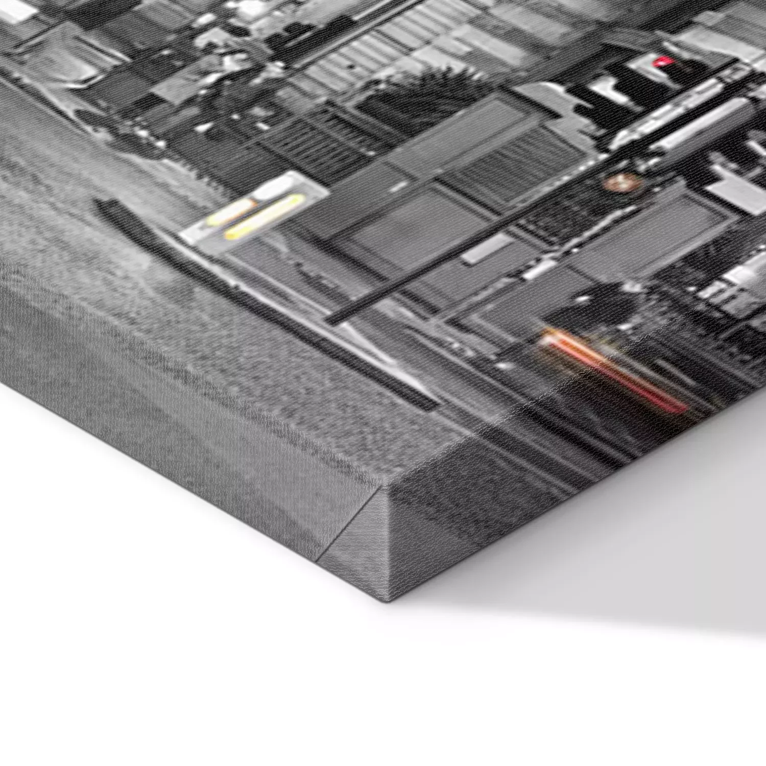De print wordt aangebracht op hoogwaardig canvas dat op een schildersweefgetouw (spieraam) wordt gespannen. Omdat de print de zijranden bedekt, hoeft het ontwerp niet met een extra kader te worden omlijst. Wij raden ook composities aan die uit meerdere foto's bestaan en zo een coherente compositie vormen.