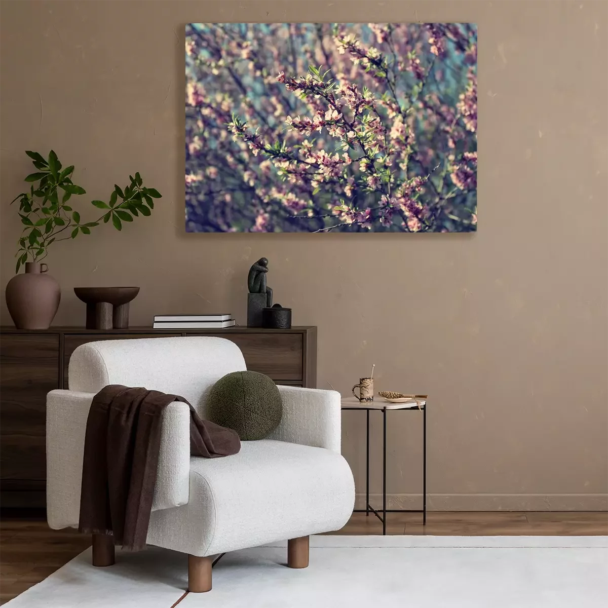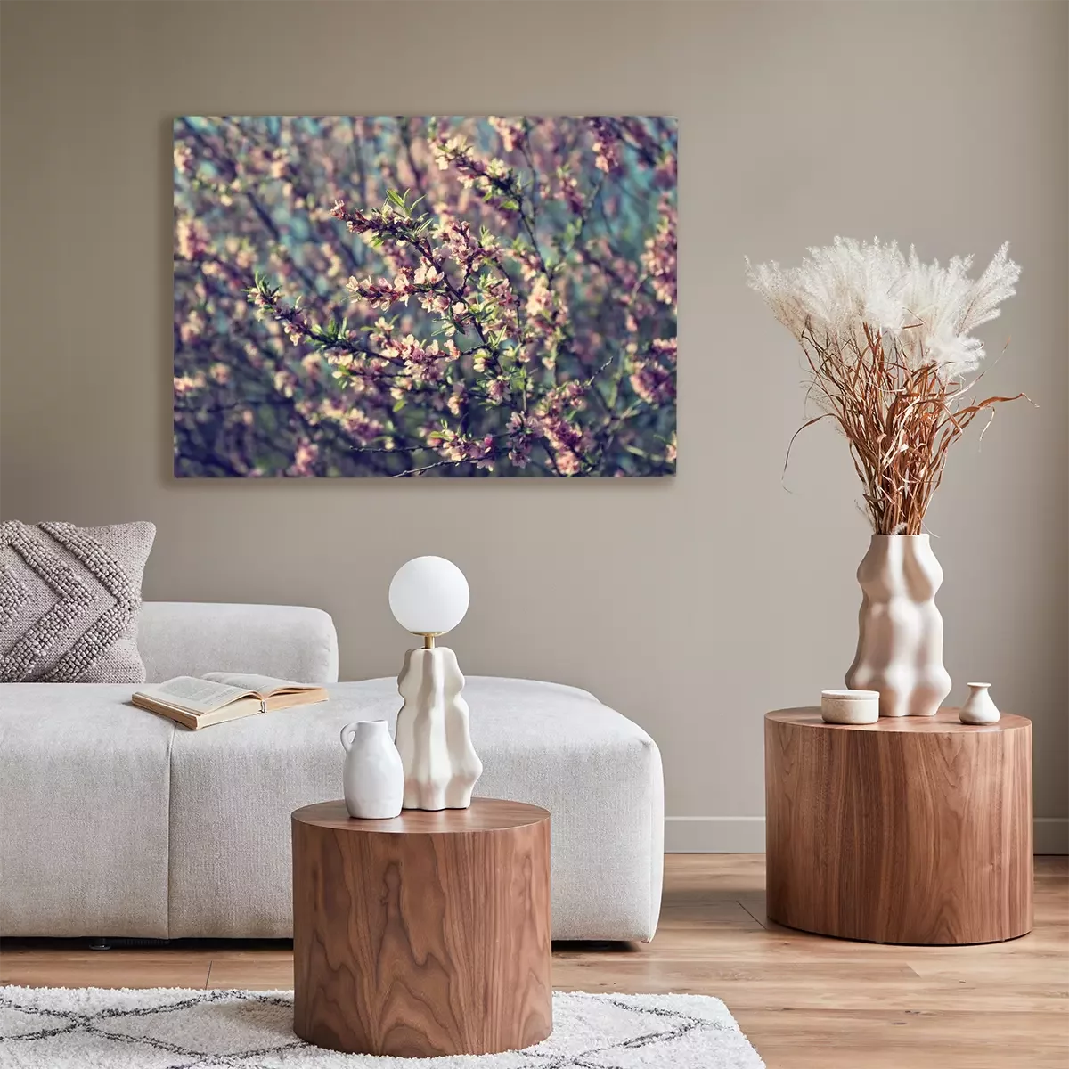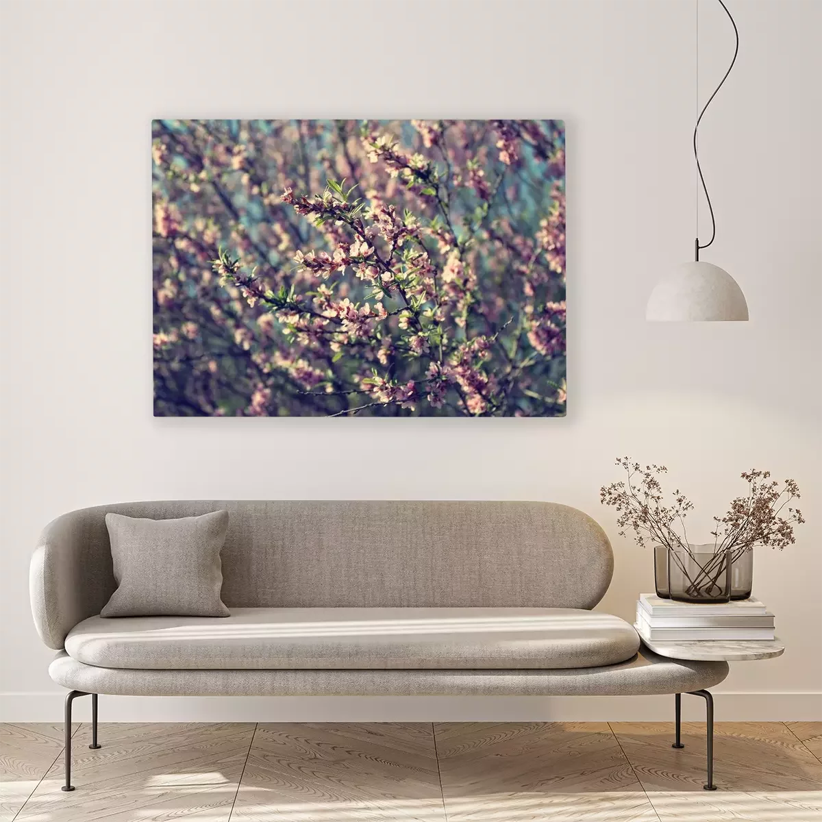 Canvas: Roze bloemen op een grijze achtergrond