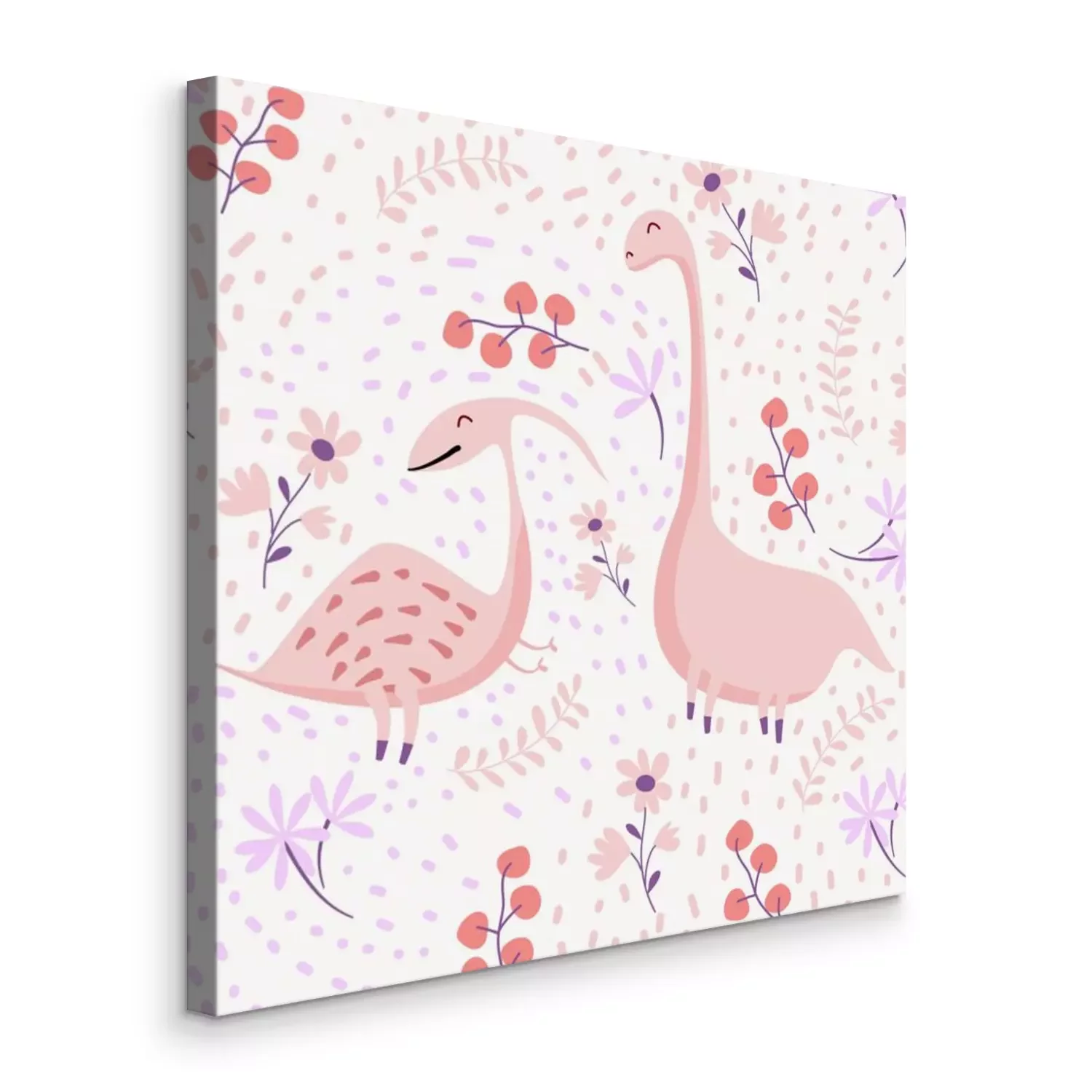 Canvas Roze dinosaurussen op een florale achtergrond