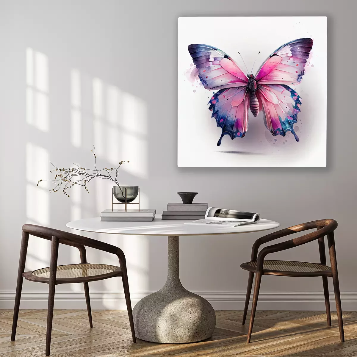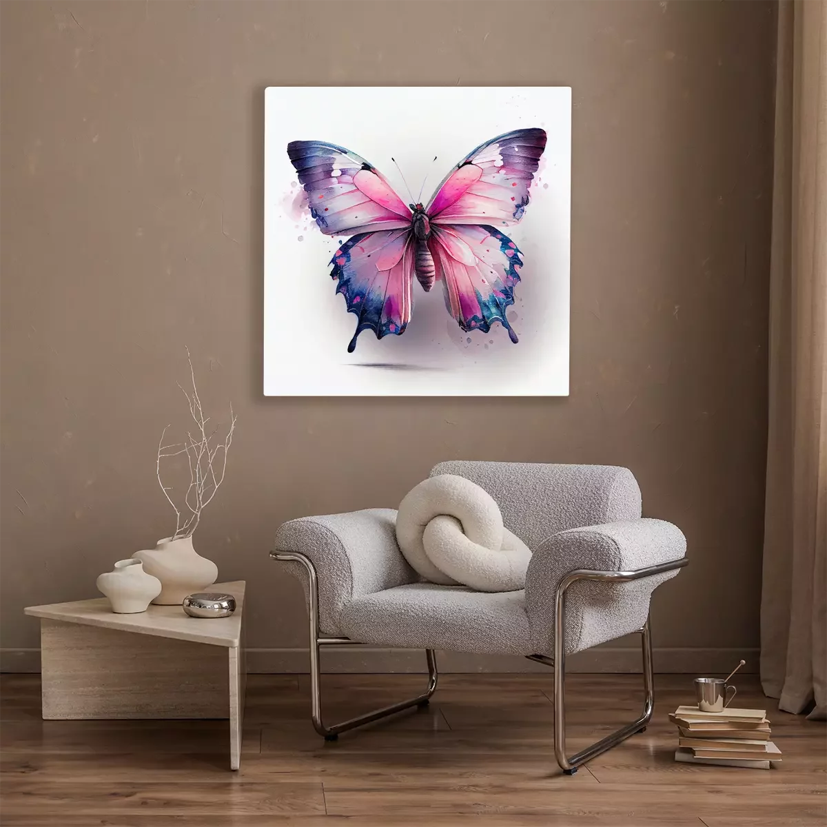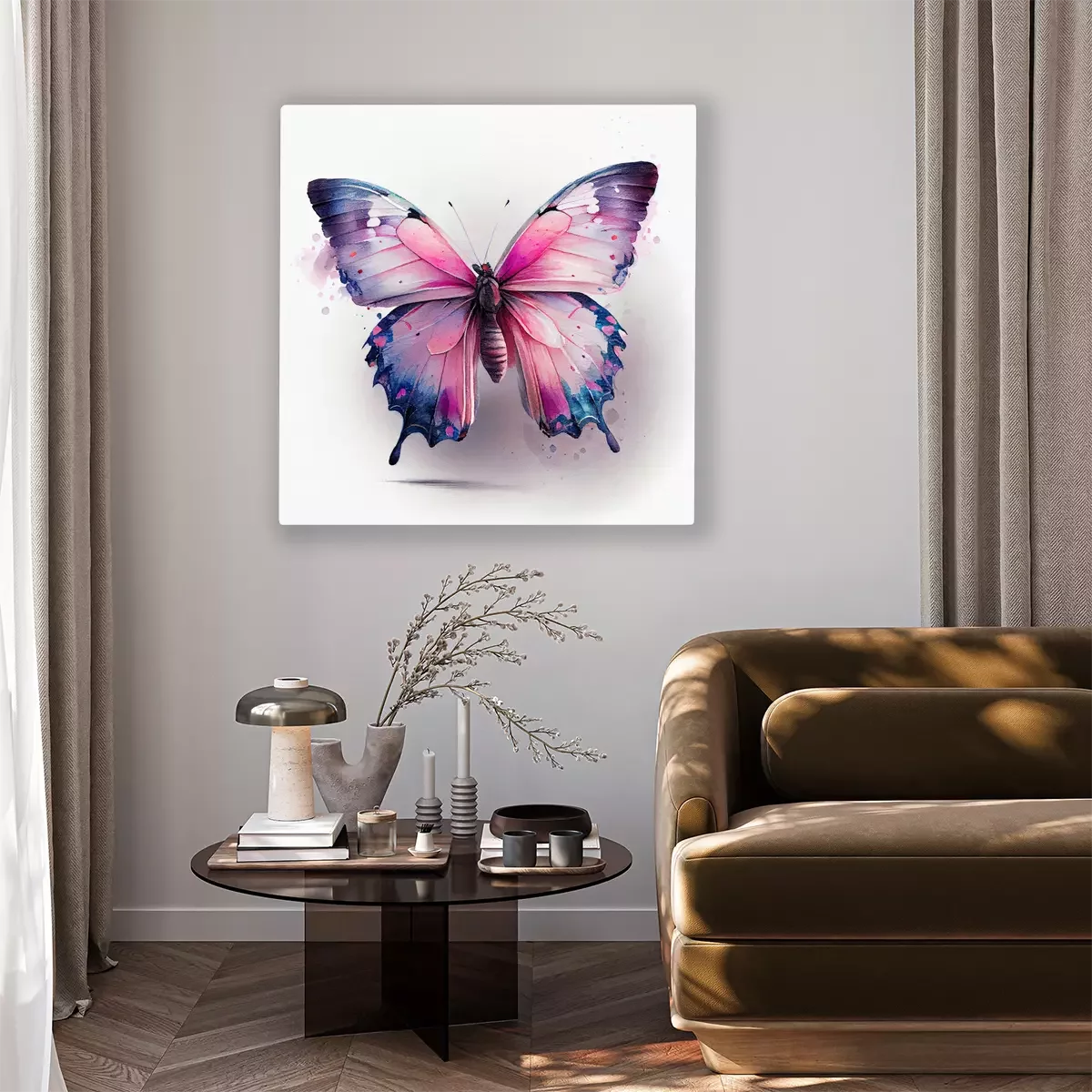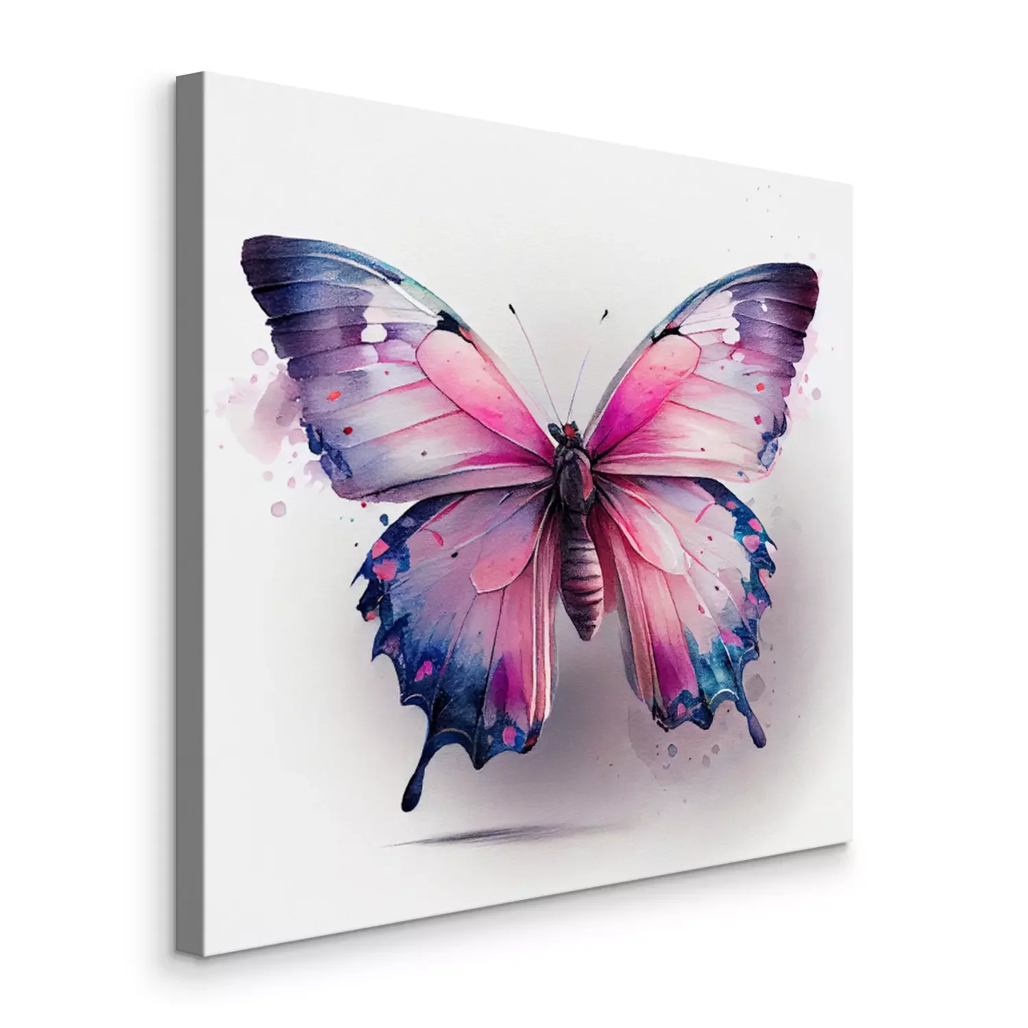 Canvas: Roze en blauwe aquarelvlinder