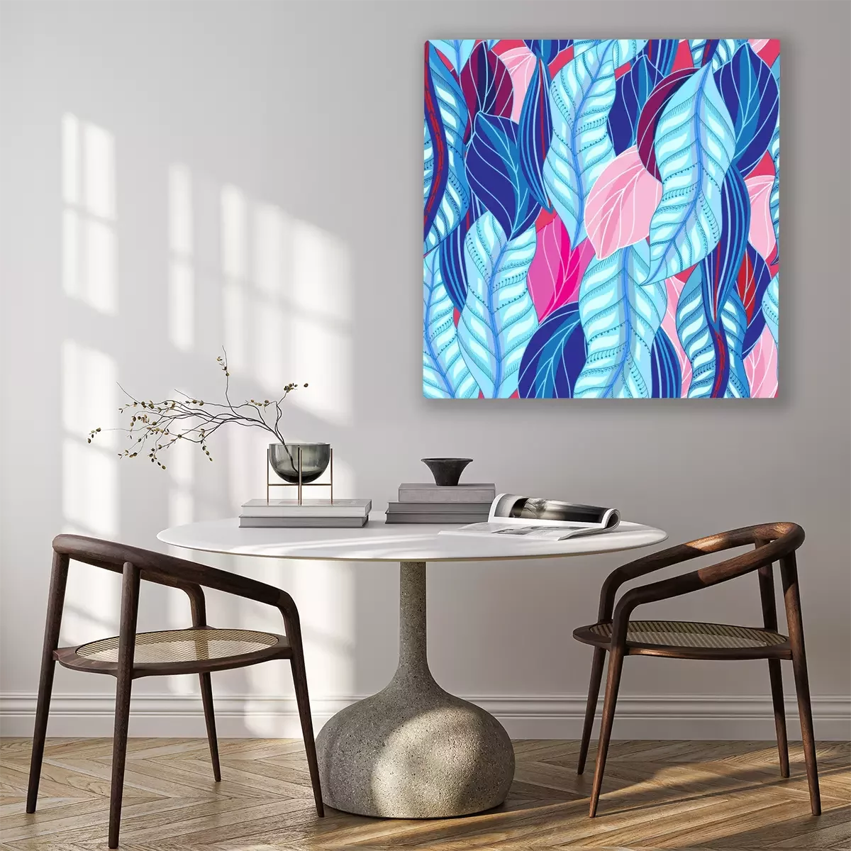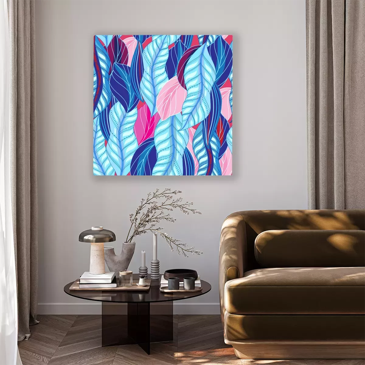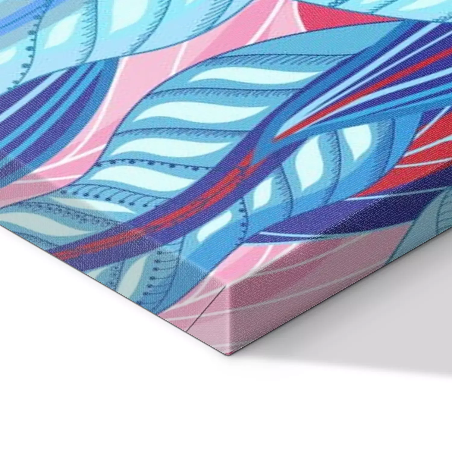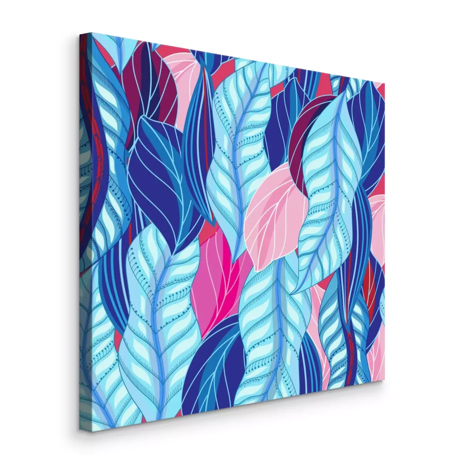 Canvas: Roze en blauwe bladeren abstractie