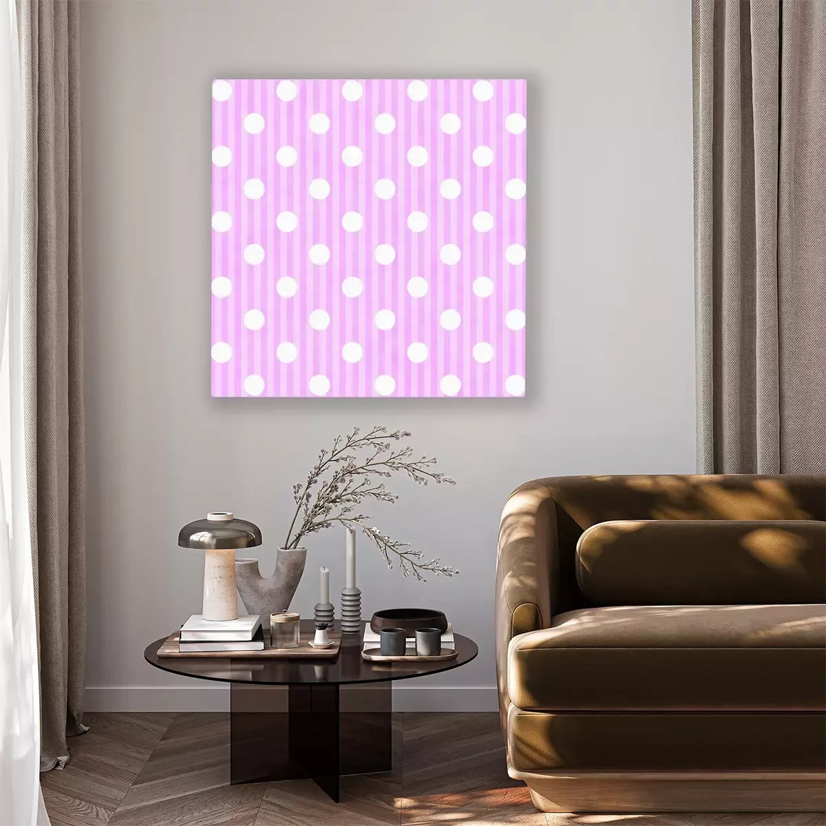 Canvas: Roze en Witte Stip en Strepen Achtergrond van de Stof