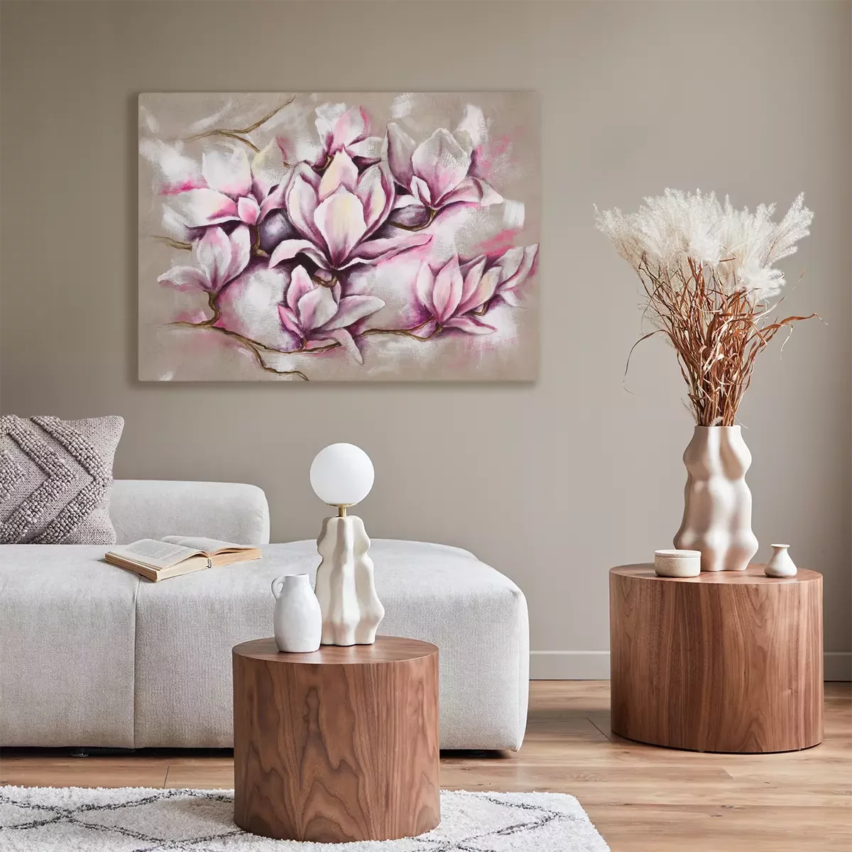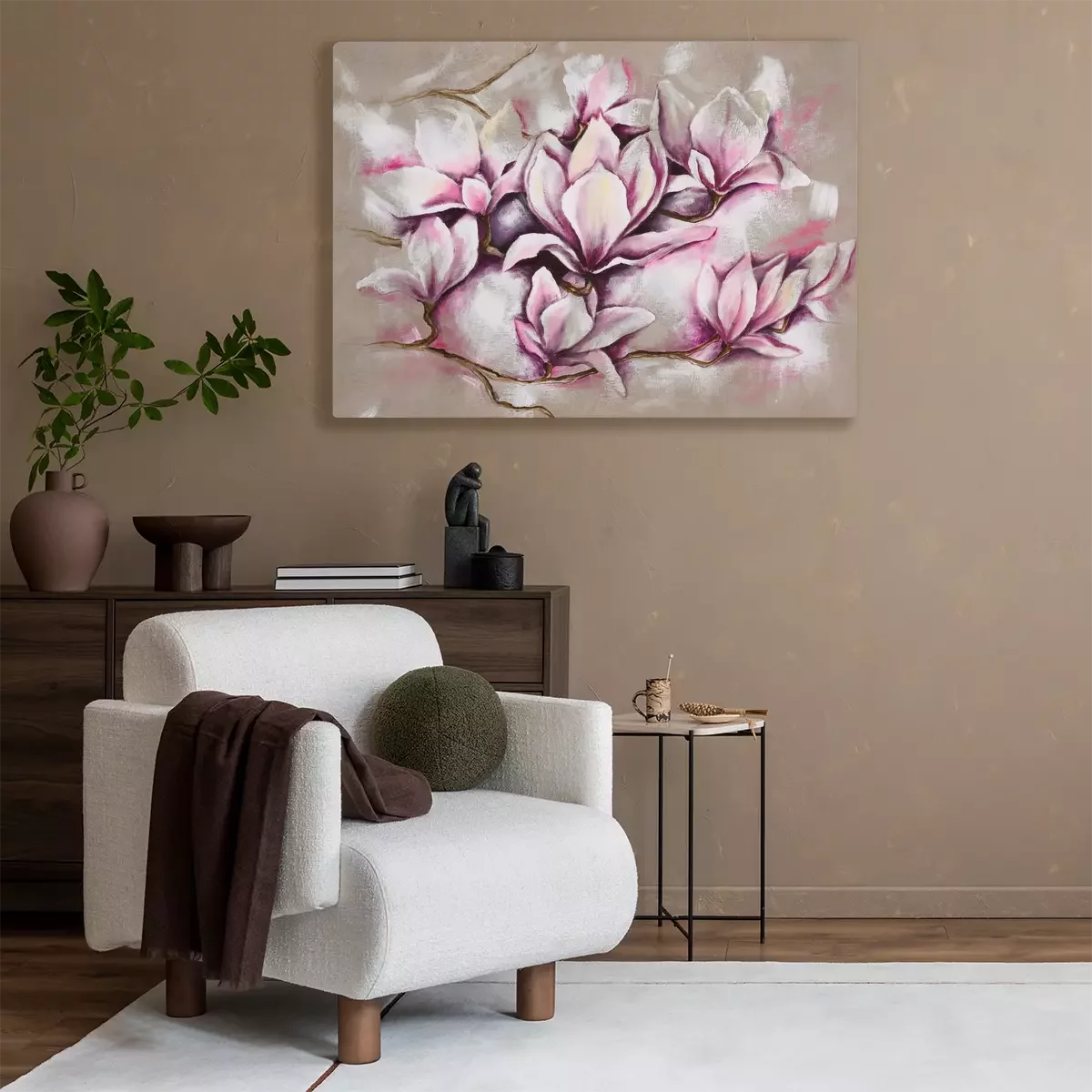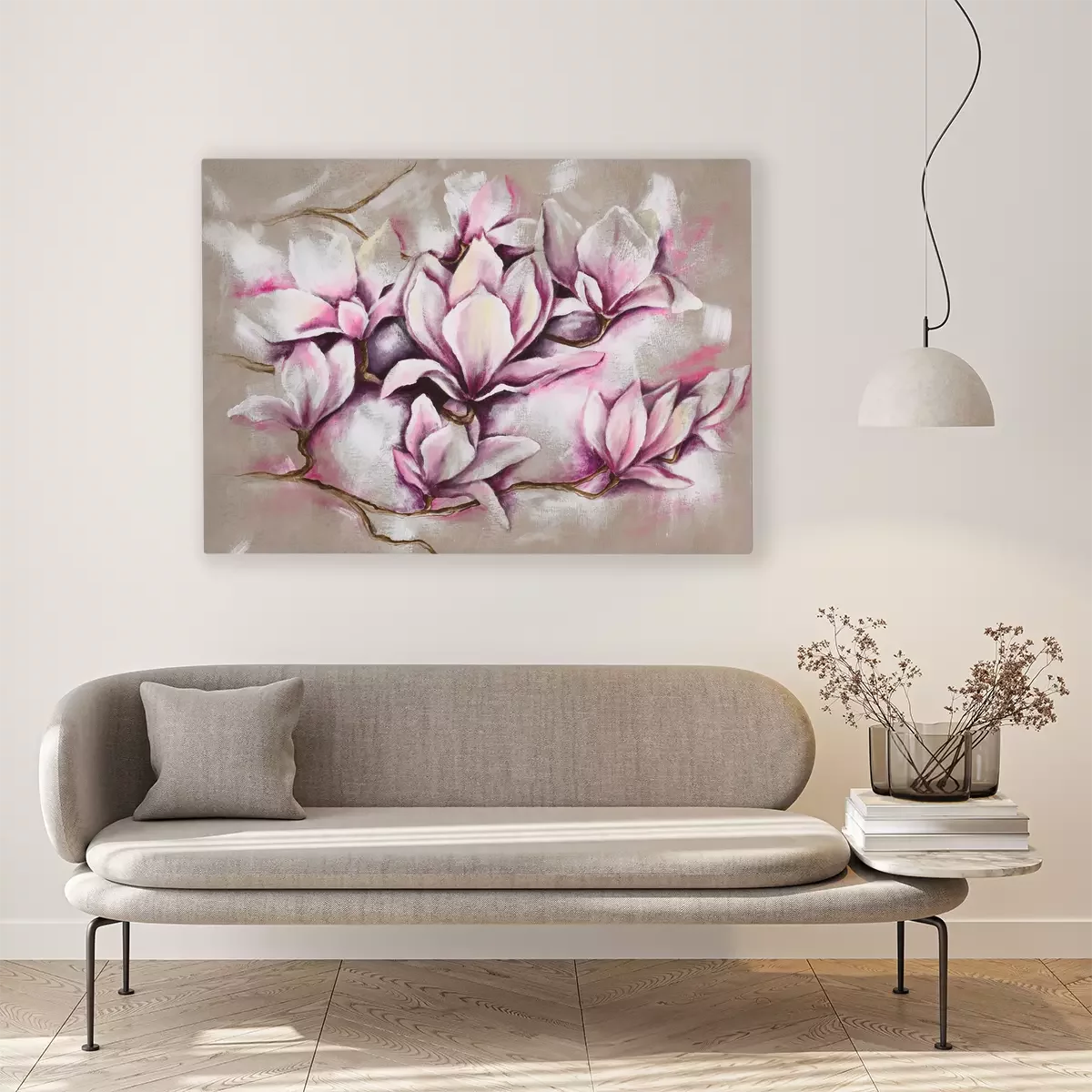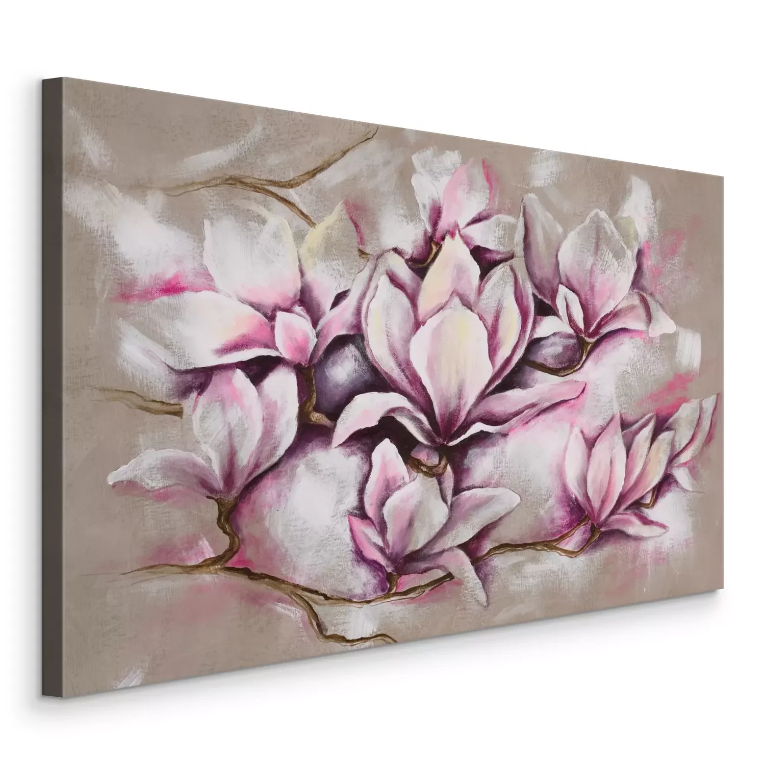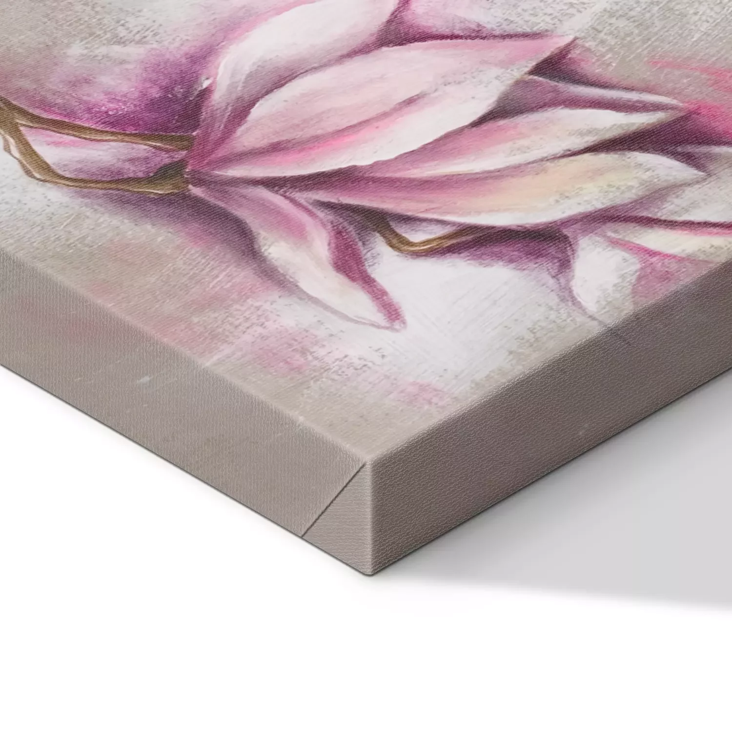 Roze geschilderde magnoliabloemen op een beige achtergrond