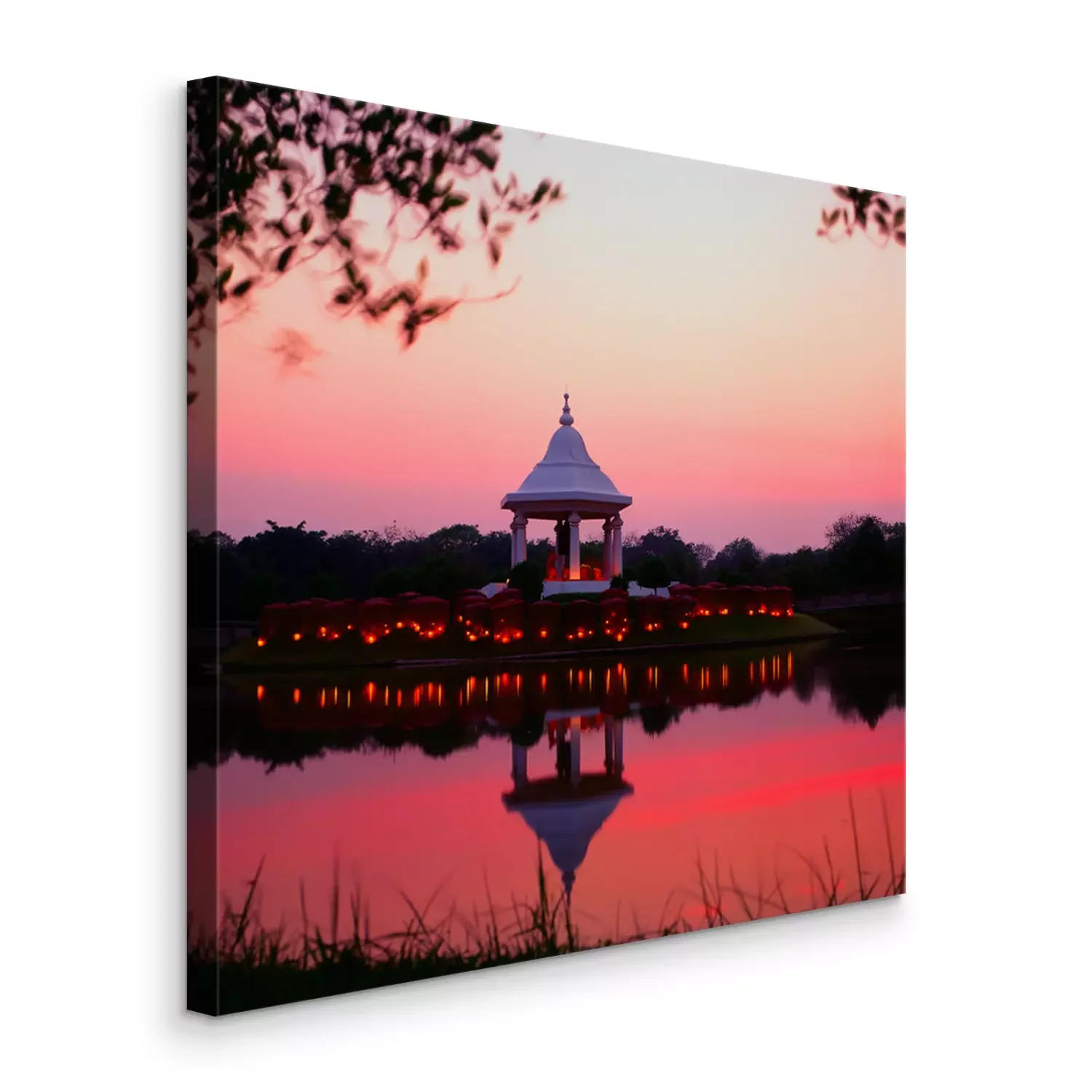 De print wordt aangebracht op hoogwaardig canvas dat op een schildersweefgetouw (spieraam) wordt gespannen. Omdat de print de zijranden bedekt, hoeft het ontwerp niet met een extra kader te worden omlijst. Wij raden ook composities aan die uit meerdere foto's bestaan en zo een coherente compositie vormen.