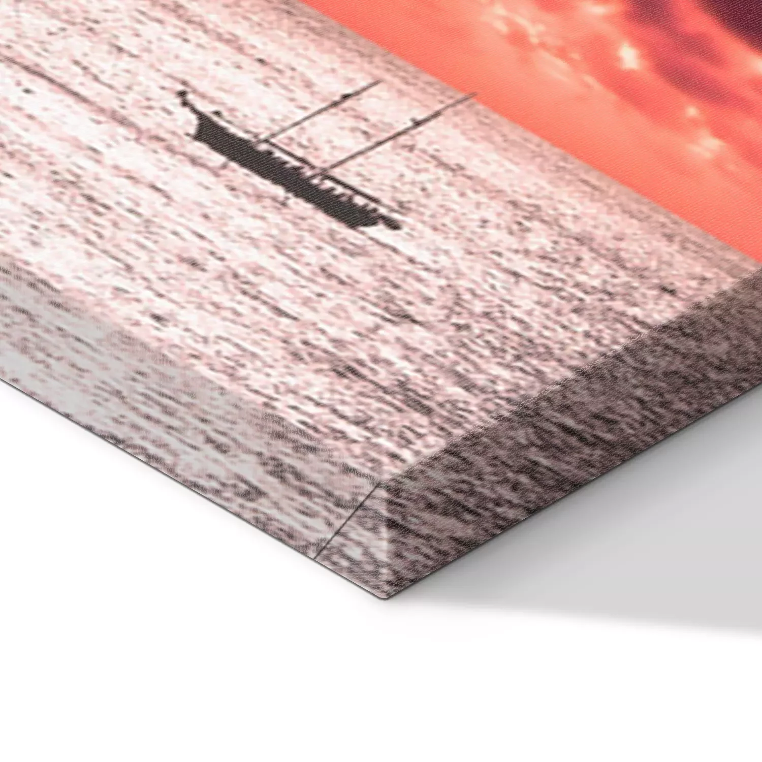 De print wordt aangebracht op hoogwaardig canvas dat op een schildersweefgetouw (spieraam) wordt gespannen. Omdat de print de zijranden bedekt, hoeft het ontwerp niet met een extra kader te worden omlijst. Wij raden ook composities aan die uit meerdere foto's bestaan en zo een coherente compositie vormen.