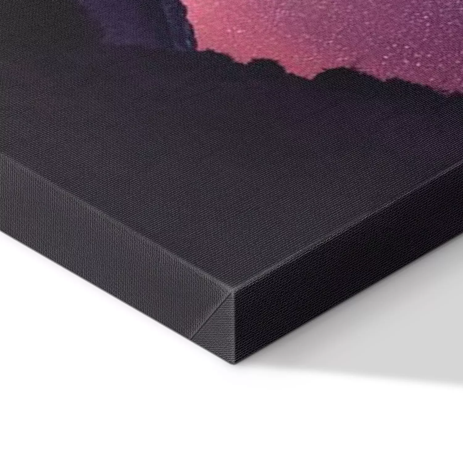 De print wordt aangebracht op hoogwaardig canvas dat op een schildersweefgetouw (spieraam) wordt gespannen. Omdat de print de zijranden bedekt, hoeft het ontwerp niet met een extra kader te worden omlijst. Wij raden ook composities aan die uit meerdere foto's bestaan en zo een coherente compositie vormen.