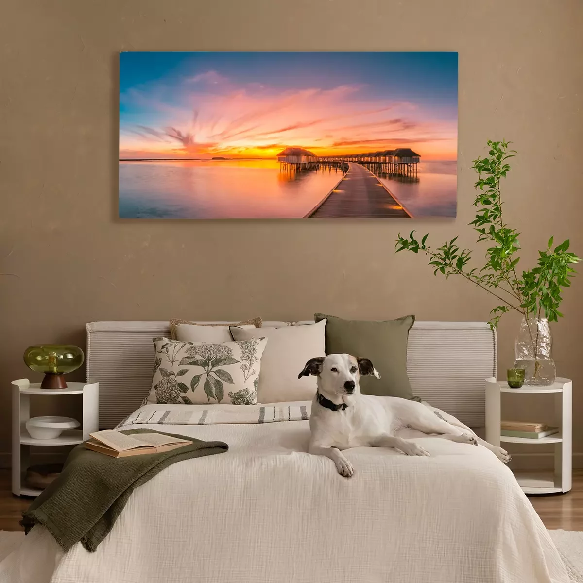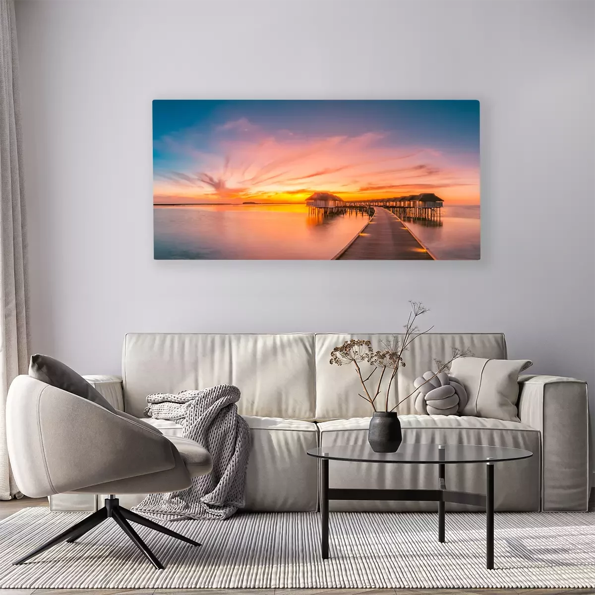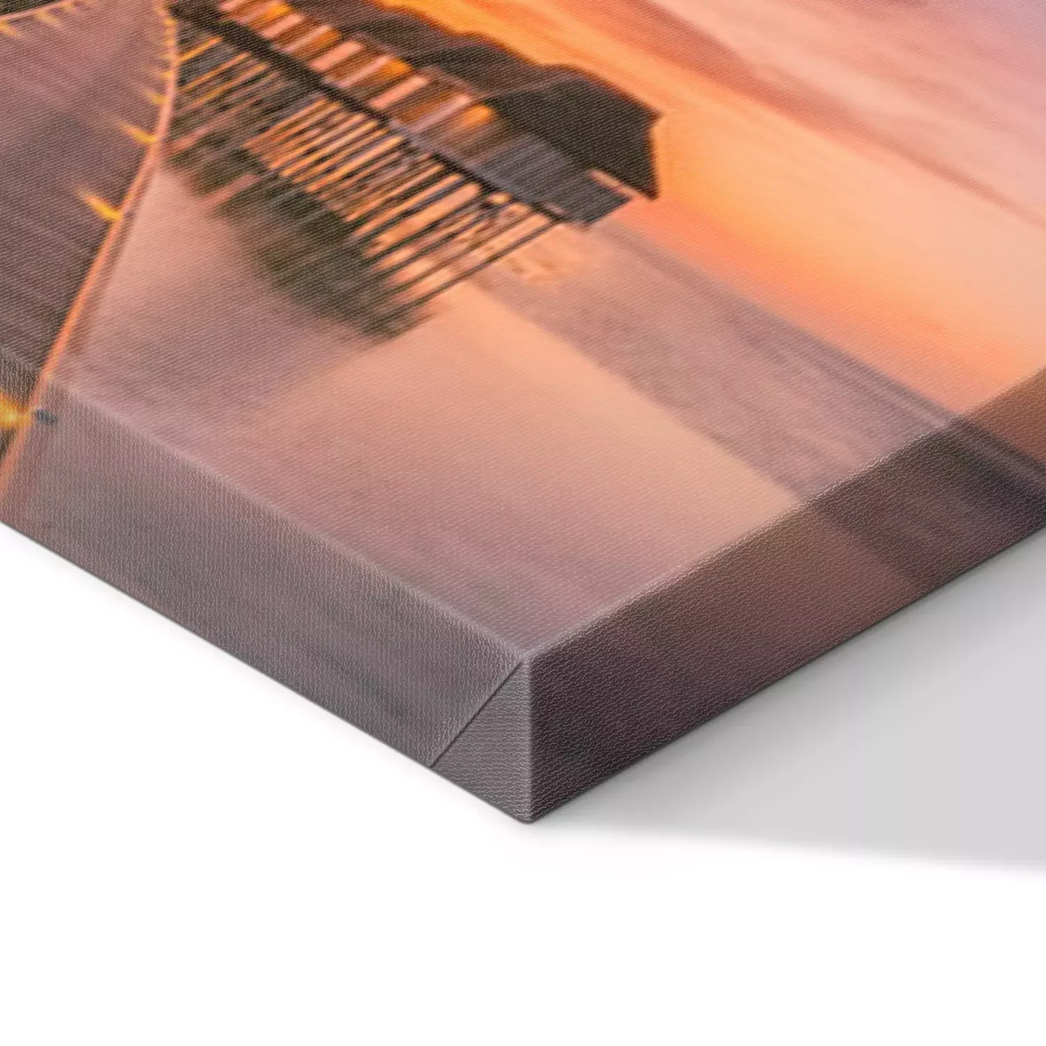 De print wordt aangebracht op hoogwaardig canvas dat op een schildersweefgetouw (spieraam) wordt gespannen. Omdat de print de zijranden bedekt, hoeft het ontwerp niet met een extra kader te worden omlijst. Wij raden ook composities aan die uit meerdere foto's bestaan en zo een coherente compositie vormen.