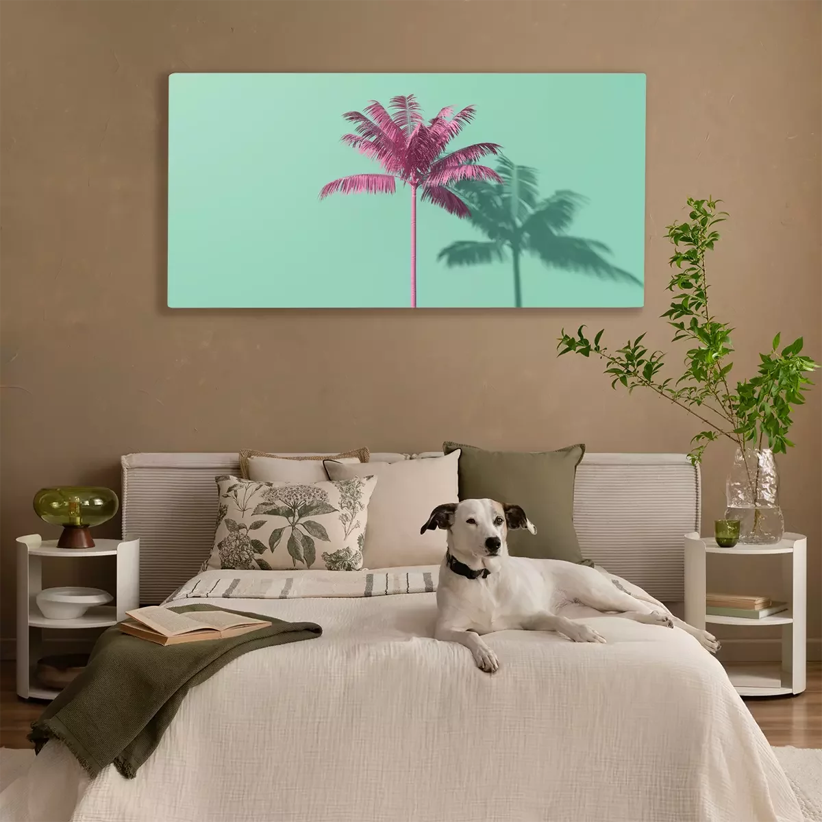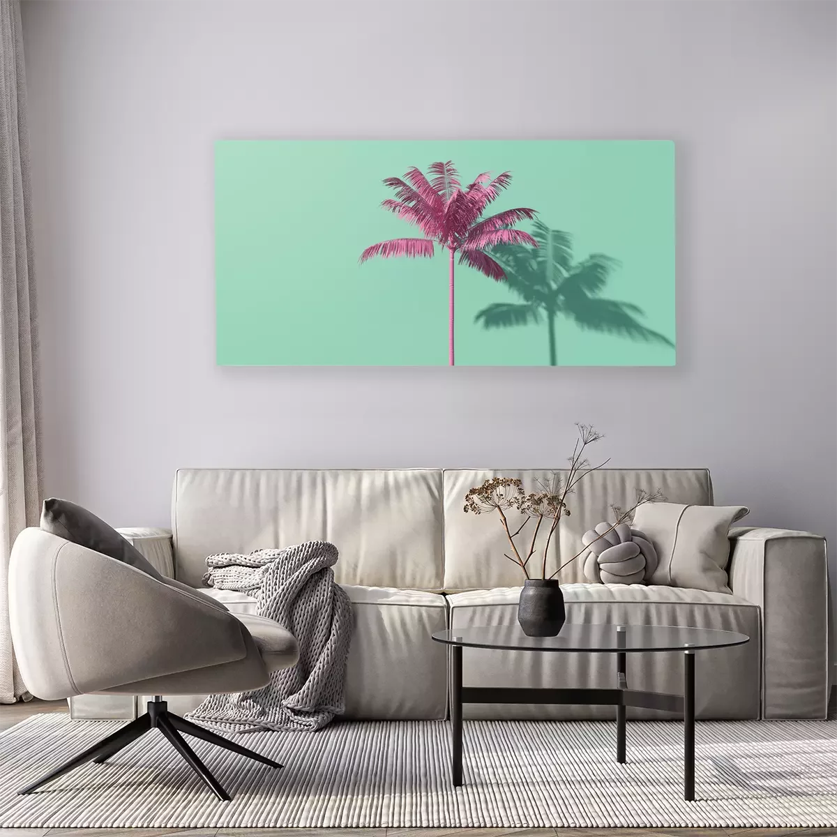 Canvas: Roze palm op een groene achtergrond