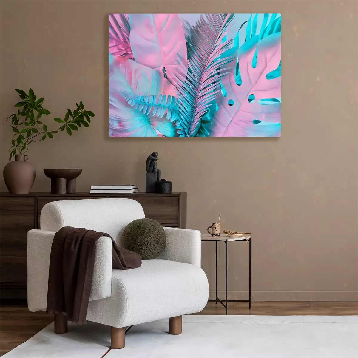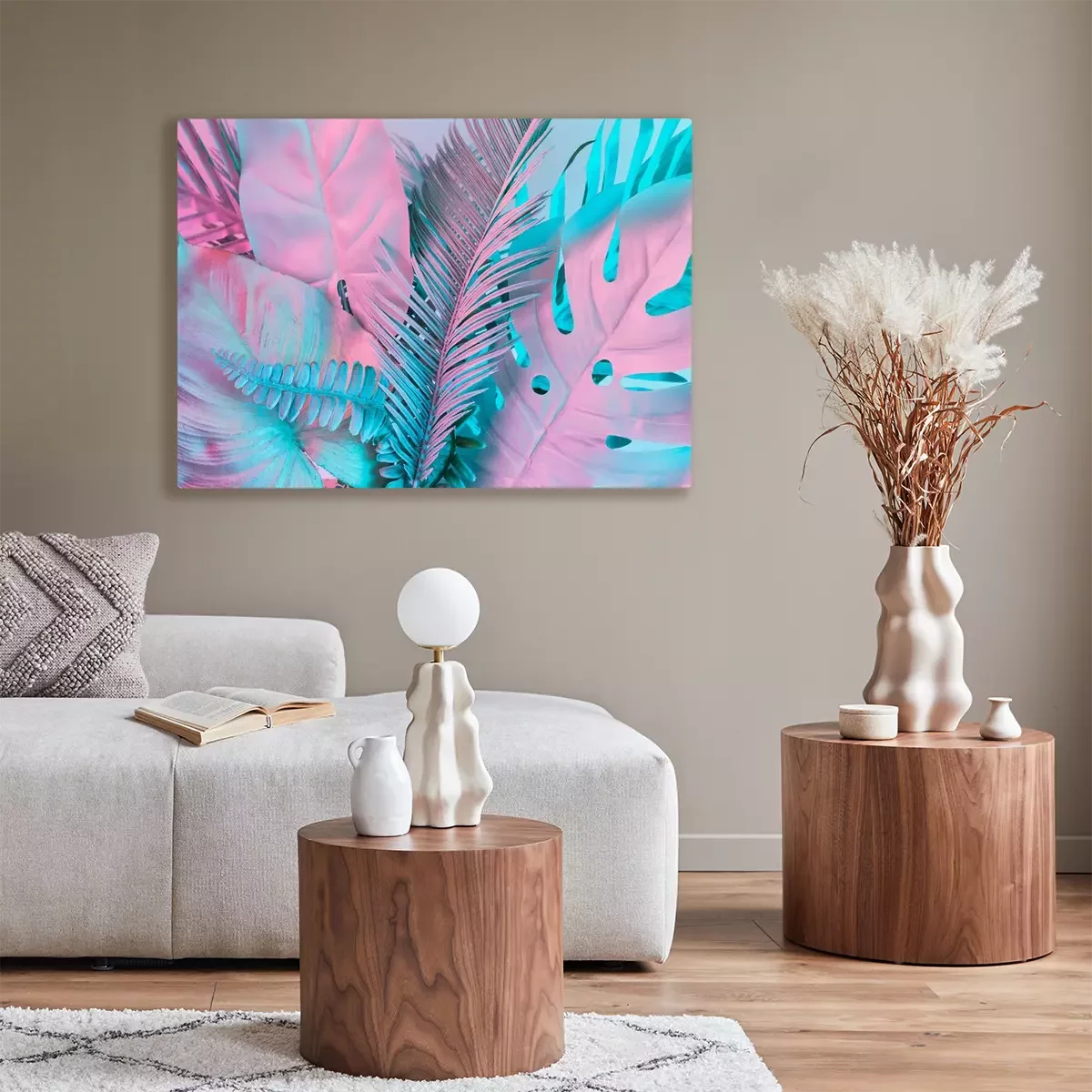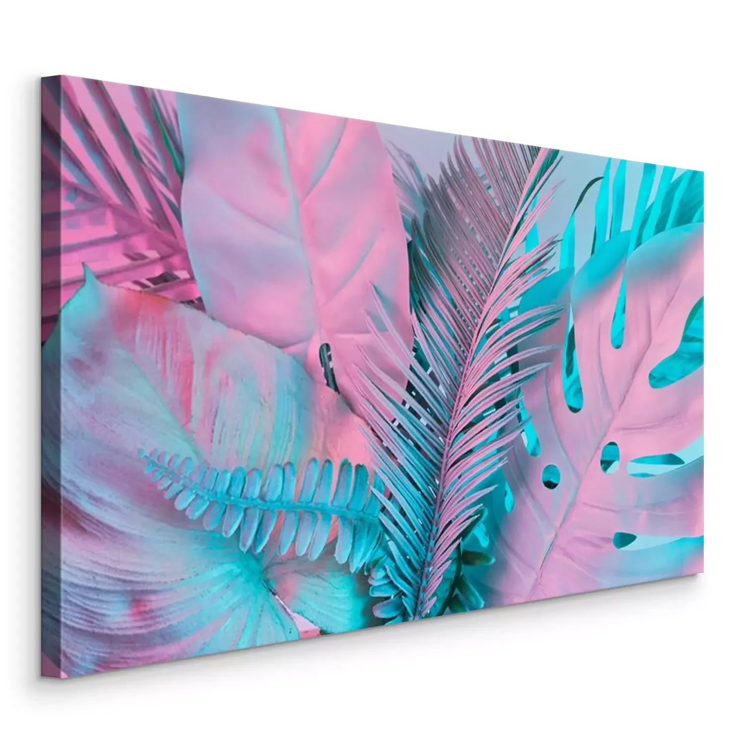 Kleurrijke palmbladeren op een gekleurde achtergrond