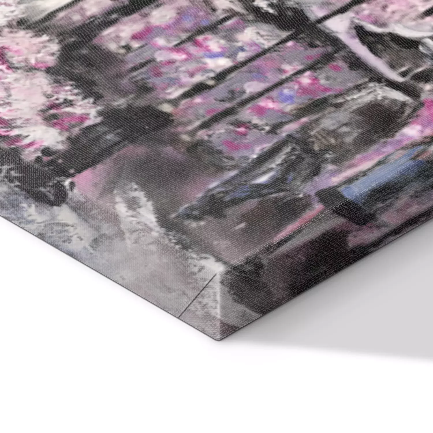 De print wordt aangebracht op hoogwaardig canvas dat op een schildersweefgetouw (spieraam) wordt gespannen. Omdat de print de zijranden bedekt, hoeft het ontwerp niet met een extra kader te worden omlijst. Wij raden ook composities aan die uit meerdere foto's bestaan en zo een coherente compositie vormen.