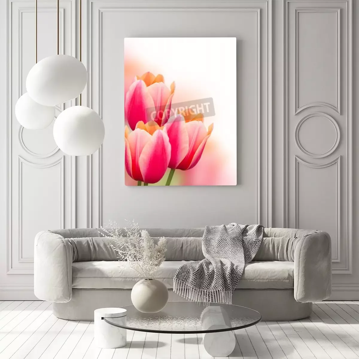 Canvas: Roze tulpen op een lichte achtergrond