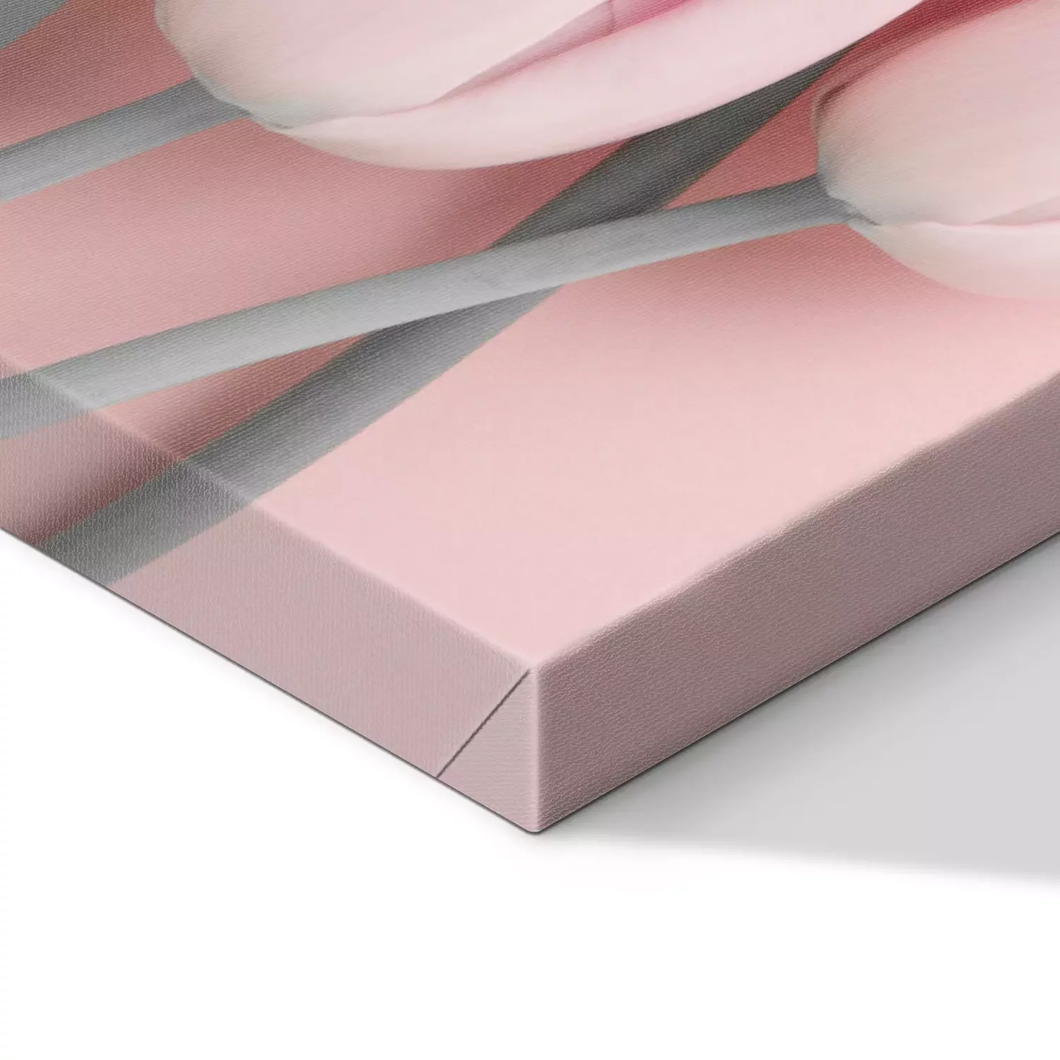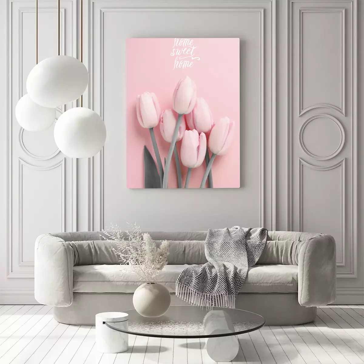 Roze tulpen op een pastelkleurige achtergrond met het opschrift