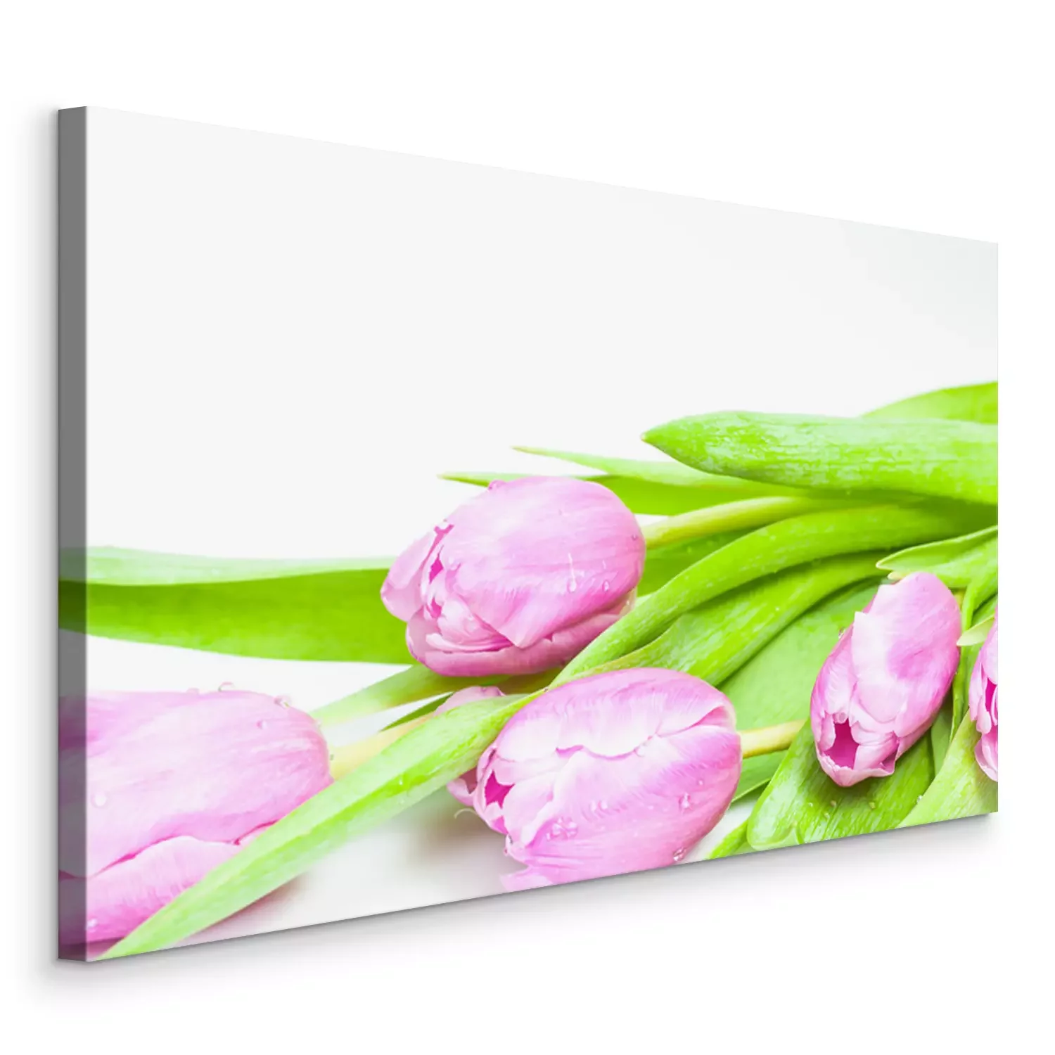 Canvas: Roze tulpen op wit met ruimte voor tekst