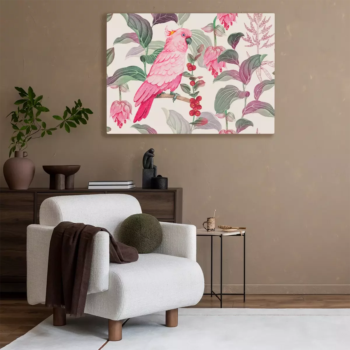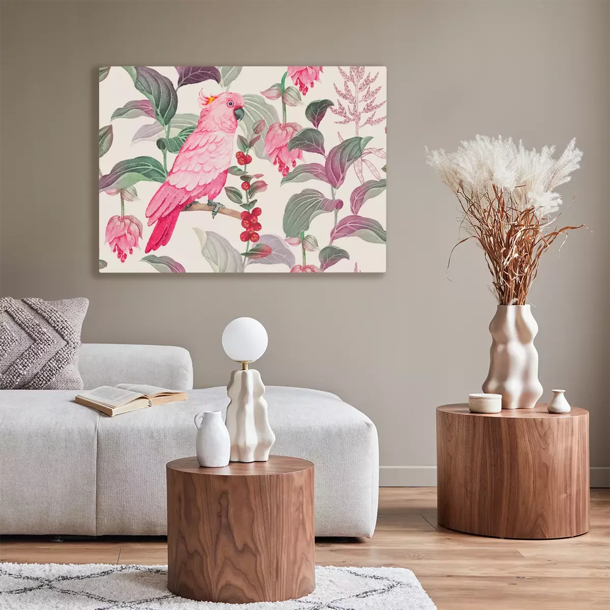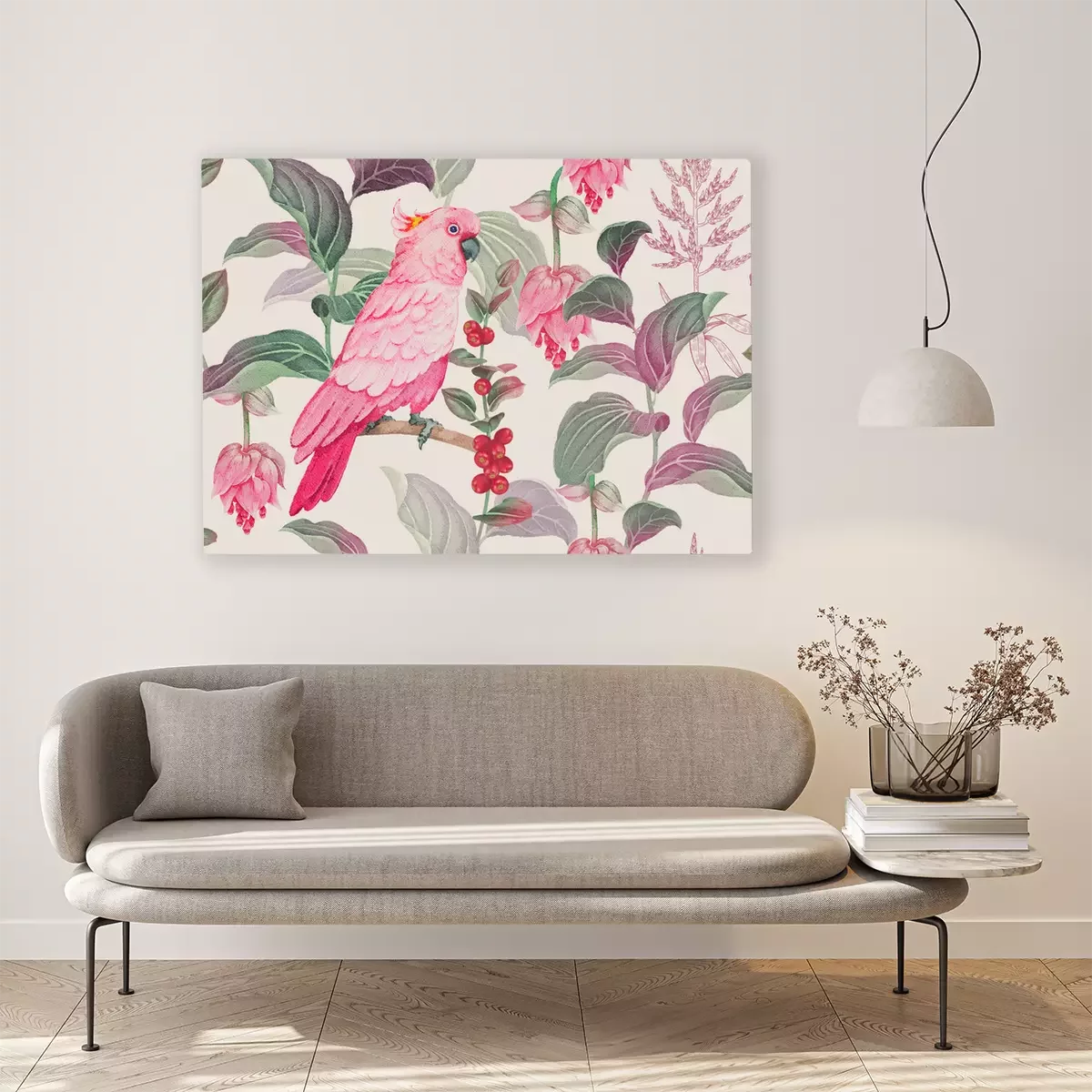 Canvas: Roze vogel en natuur
