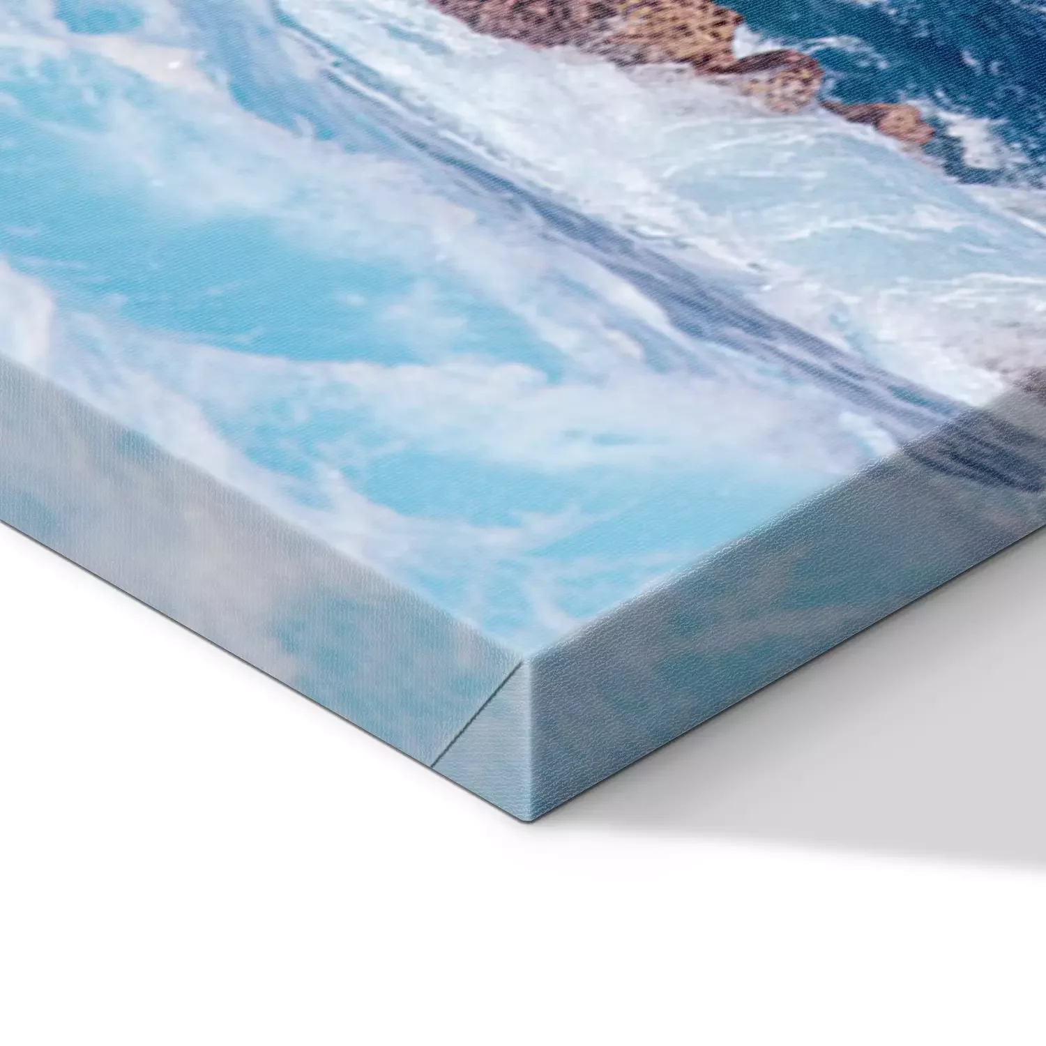 De print wordt aangebracht op hoogwaardig canvas dat op een schildersweefgetouw (spieraam) wordt gespannen. Omdat de print de zijranden bedekt, hoeft het ontwerp niet met een extra kader te worden omlijst. Wij raden ook composities aan die uit meerdere foto's bestaan en zo een coherente compositie vormen.