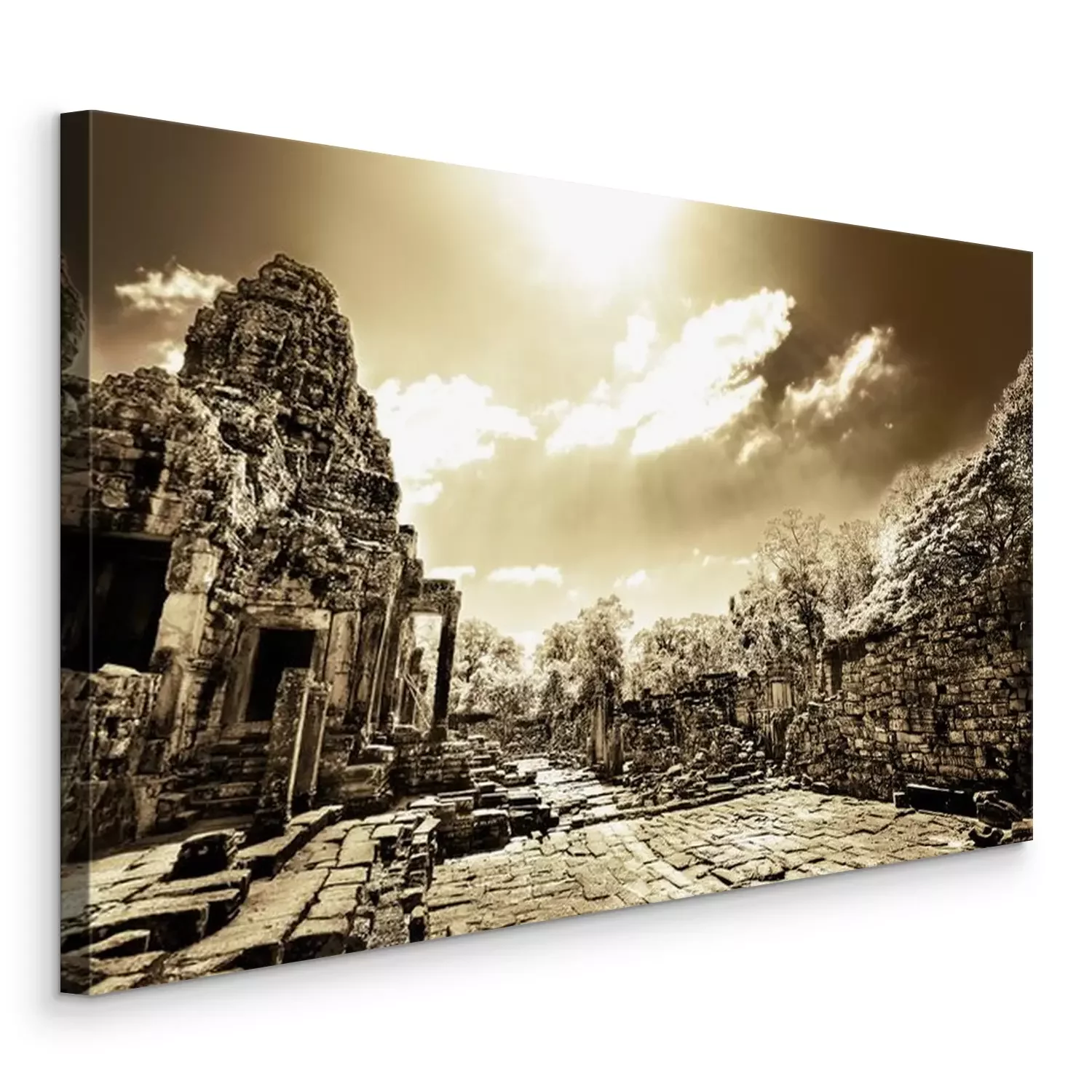 Canvas: Ruïnes van Aziatische boeddhistische tempel in Cambodja - monochroom