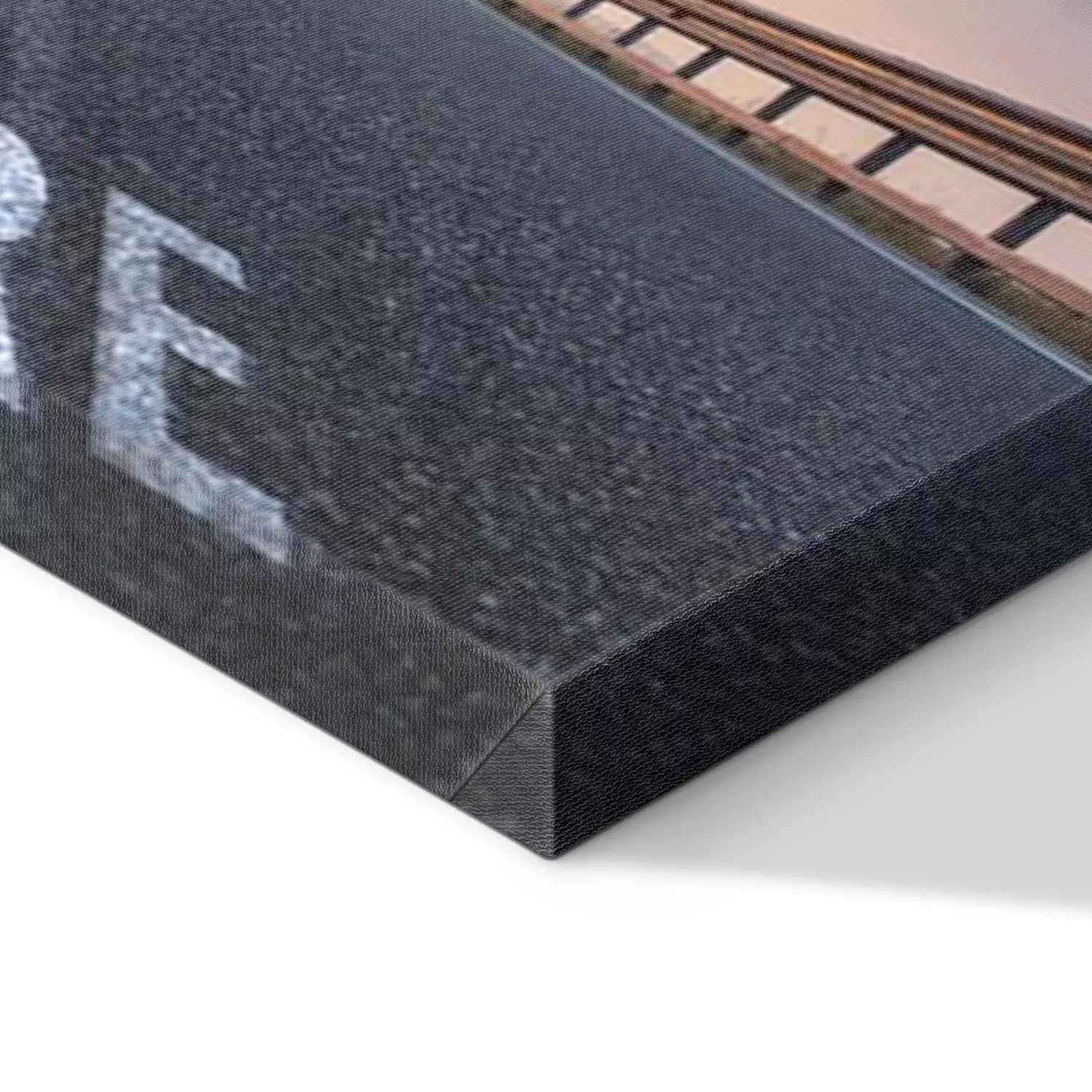 De print wordt aangebracht op hoogwaardig canvas dat op een schildersweefgetouw (spieraam) wordt gespannen. Omdat de print de zijranden bedekt, hoeft het ontwerp niet met een extra kader te worden omlijst. Wij raden ook composities aan die uit meerdere foto's bestaan en zo een coherente compositie vormen.