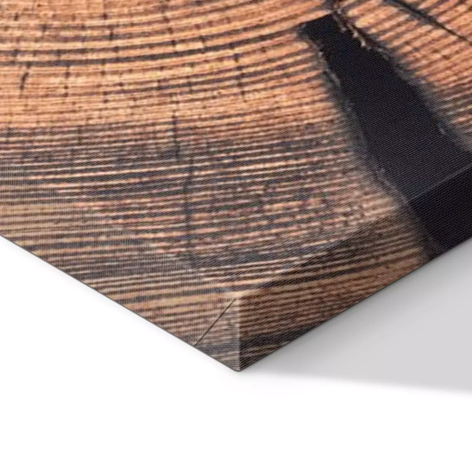 De print wordt aangebracht op hoogwaardig canvas dat op een schildersweefgetouw (spieraam) wordt gespannen. Omdat de print de zijranden bedekt, hoeft het ontwerp niet met een extra kader te worden omlijst. Wij raden ook composities aan die uit meerdere foto's bestaan en zo een coherente compositie vormen.