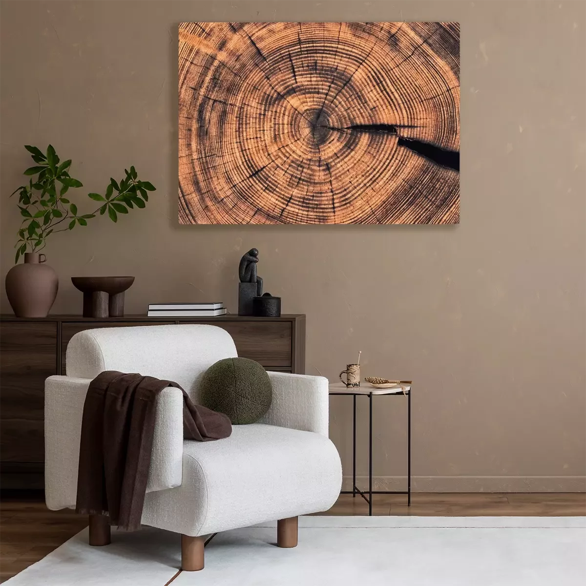Canvas: rustic table with a pattern of annual rings. wood texture cut stump background