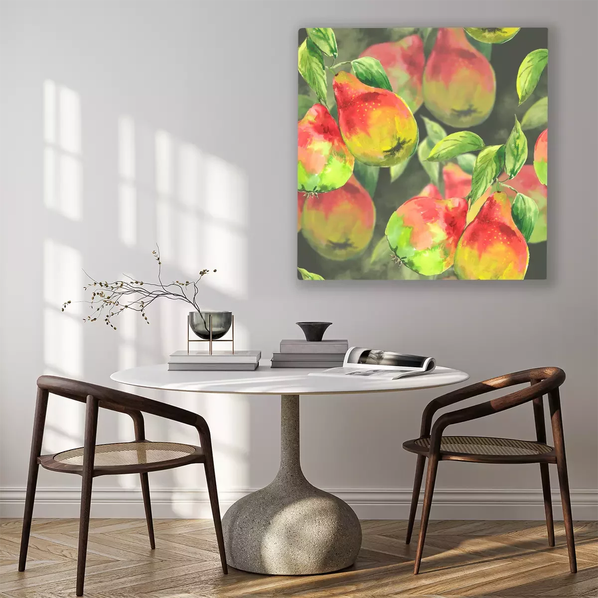 Wie zal van een stilleven houden? Canvas met dit thema is een geweldige oplossing voor iedereen die houdt van beproefde, klassieke en tijdloos mooie decoratieve oplossingen. In de kunst is dit een zeer populair motief, aangezien veel kunstenaars hiernaar grijpen. Dit heeft ook gemaakt dat het een geweldige oplossing is wanneer je op zoek bent naar een decoratie die er goed uit zal zien, ongeacht veranderende trends. En dat is precies het canvas dat wij hebben gekozen. Peren zijn gepresenteerd alsof ze met verf zijn geschilderd, je kunt zelfs de penseelstreken zien. Wat aandacht verdient, is het ruimtelijke karakter van het patroon. De vruchten die op de voorgrond staan, hebben een sterkere kleur dan de achtergrond, wat een driedimensionaal effect creëert. Waar zal zo'n canvas goed tot zijn recht komen? Fruit zal perfect passen in de keukendecoratie. De decoratie kan worden opgehangen boven de eettafel waarop een schaal met appels of peren staat, of geplaatst worden op een plank waarop kruiden in potten staan. Sappige, sterke kleuren zorgen ervoor dat zo'n accent de bestaande inrichting verlevendigt. Een andere suggestie is de eetkamer. Ook hier past een stilleven. Canvas zal een mooie aanvulling zijn op de ruimte waar maaltijden worden genuttigd met de familie. Als de grootte van de ruimte dit toelaat, is het de moeite waard om te kiezen voor een grootformaat canvas. Peren in felle kleuren op een groot doek zullen ervoor zorgen dat de eetkamer in een oogwenk een frisse uitstraling krijgt. Maar niet alleen in deze twee plaatsen zal een stilleven goed presenteren. Omdat het een bekend artistiek motief is, kan zo'n canvas ook in de woonkamer worden tentoongesteld. Peren met groen-rode schillen zullen een accent worden dat de aandacht trekt. Tegelijkertijd kan men er zeker van zijn dat het patroon de inrichting niet zal overheersen, maar deze harmonieus zal aanvullen. Het hier gepresenteerde stilleven zal er prachtig uitzien in een traditioneel ingerichte woonkamer, maar ook in een rustieke of ecologische stijl. Houten meubels in een donkere, chocoladekleur zullen passen bij het rood en groen van de peren, waardoor een gezellige en aangename decoratie ontstaat.