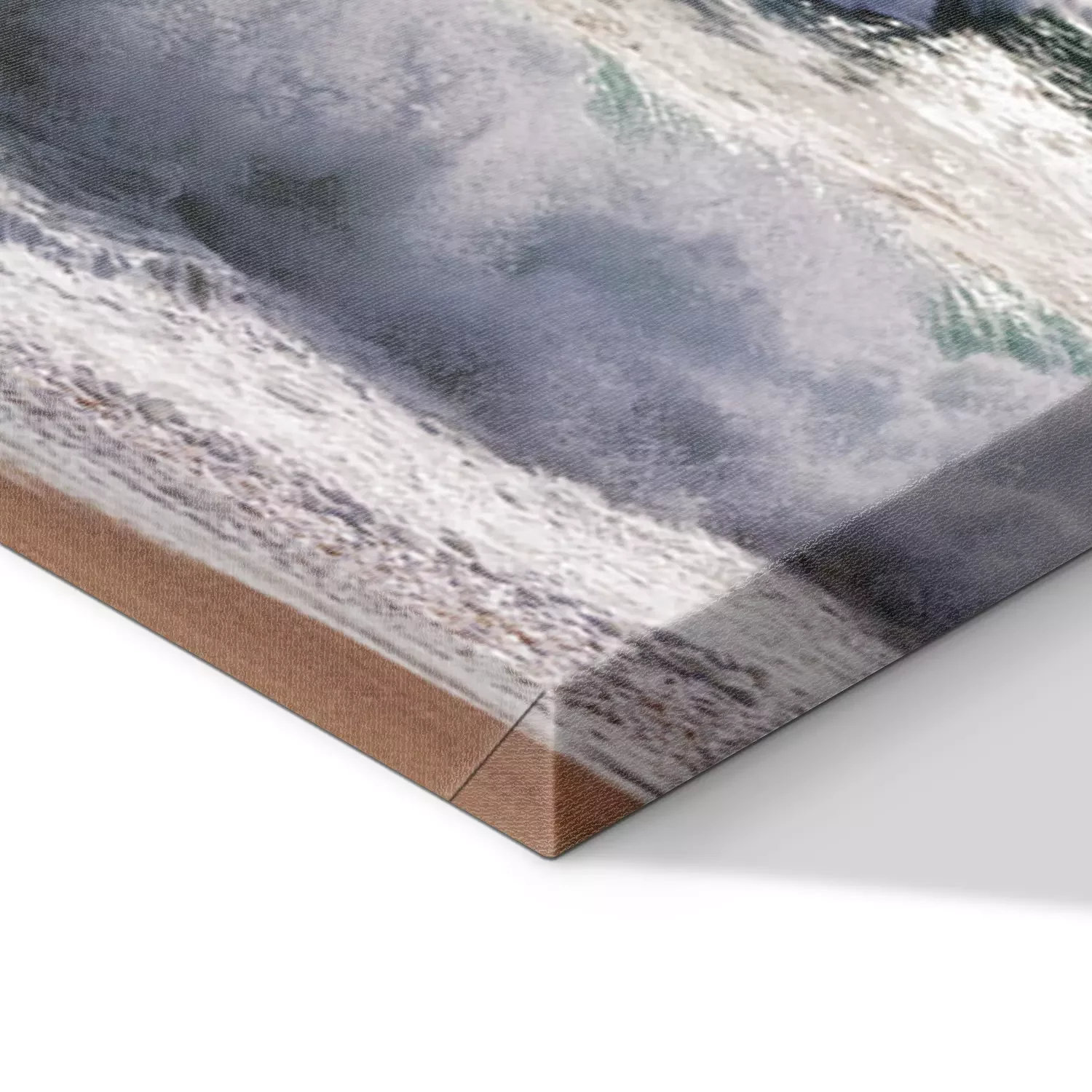 De print wordt aangebracht op hoogwaardig canvas dat op een schildersweefgetouw (spieraam) wordt gespannen. Omdat de print de zijranden bedekt, hoeft het ontwerp niet met een extra kader te worden omlijst. Wij raden ook composities aan die uit meerdere foto's bestaan en zo een coherente compositie vormen.