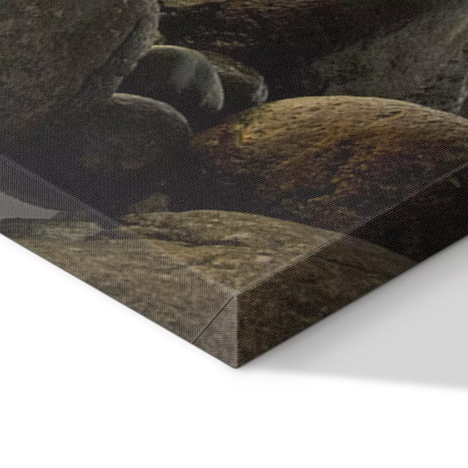 De print wordt aangebracht op hoogwaardig canvas dat op een schildersweefgetouw (spieraam) wordt gespannen. Omdat de print de zijranden bedekt, hoeft het ontwerp niet met een extra kader te worden omlijst. Wij raden ook composities aan die uit meerdere foto's bestaan en zo een coherente compositie vormen.