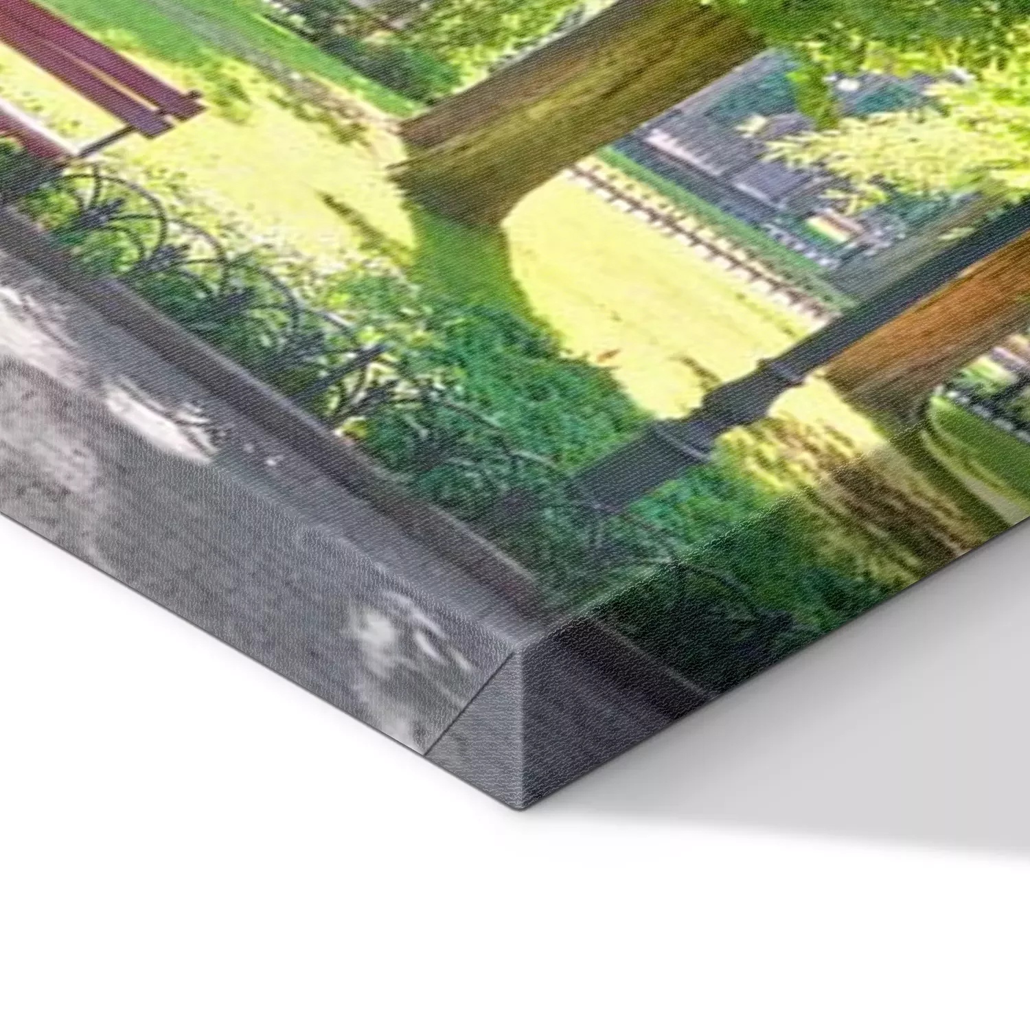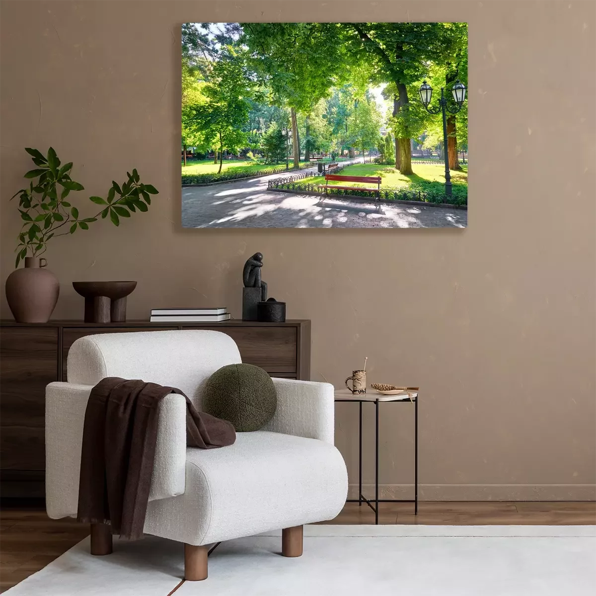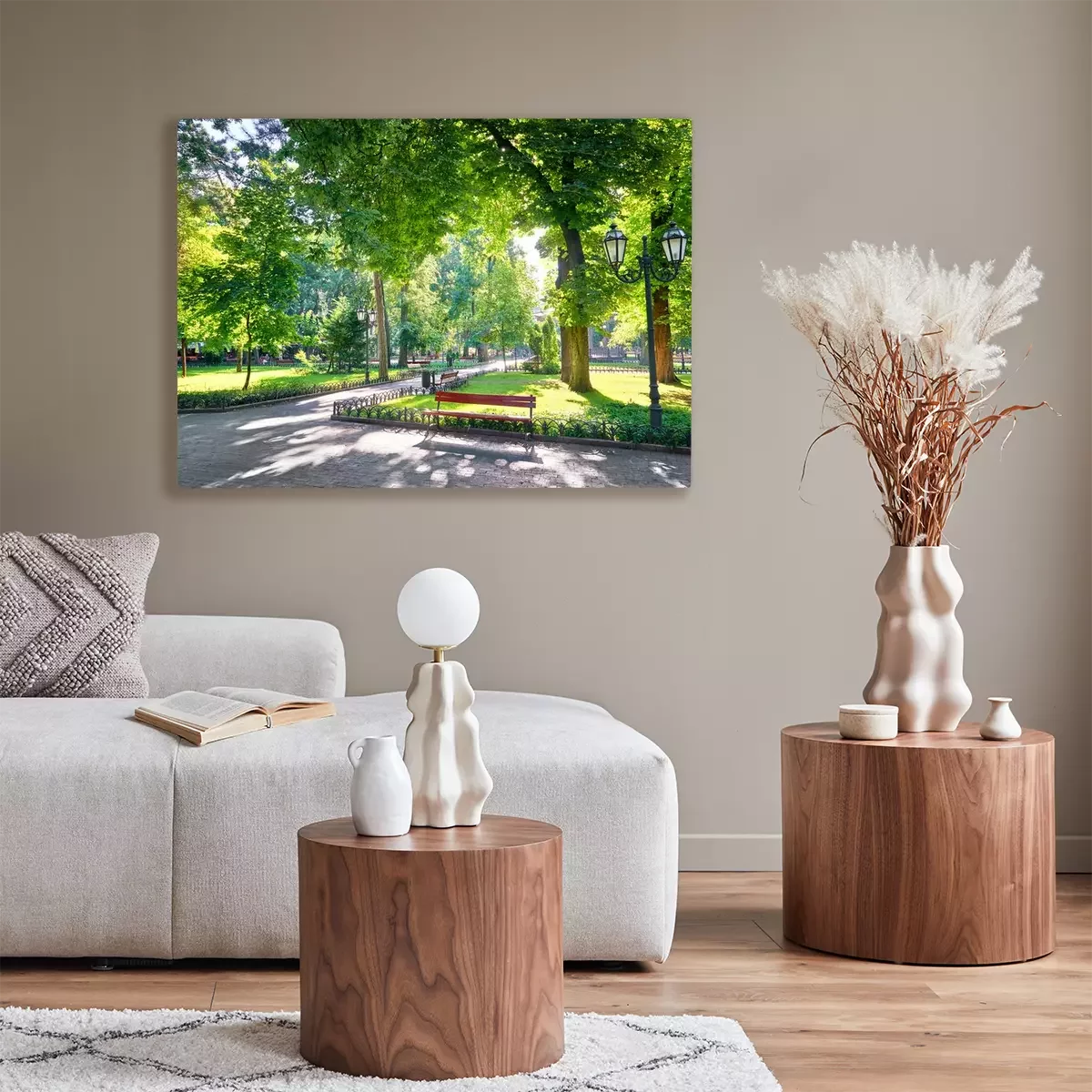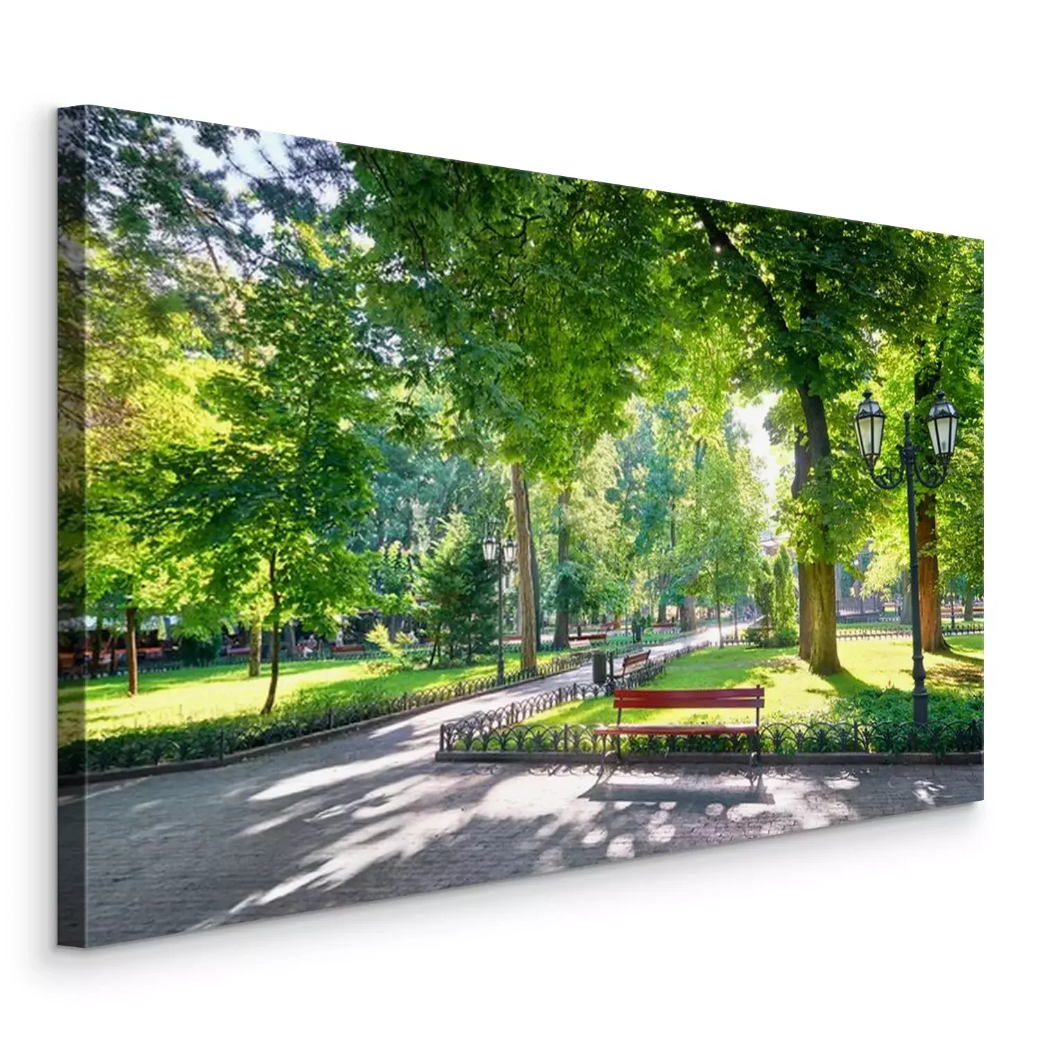 Canvas: 's ochtends in het stadspark, fel zonlicht en schaduwen, de zomer seizoen, mooi landschap