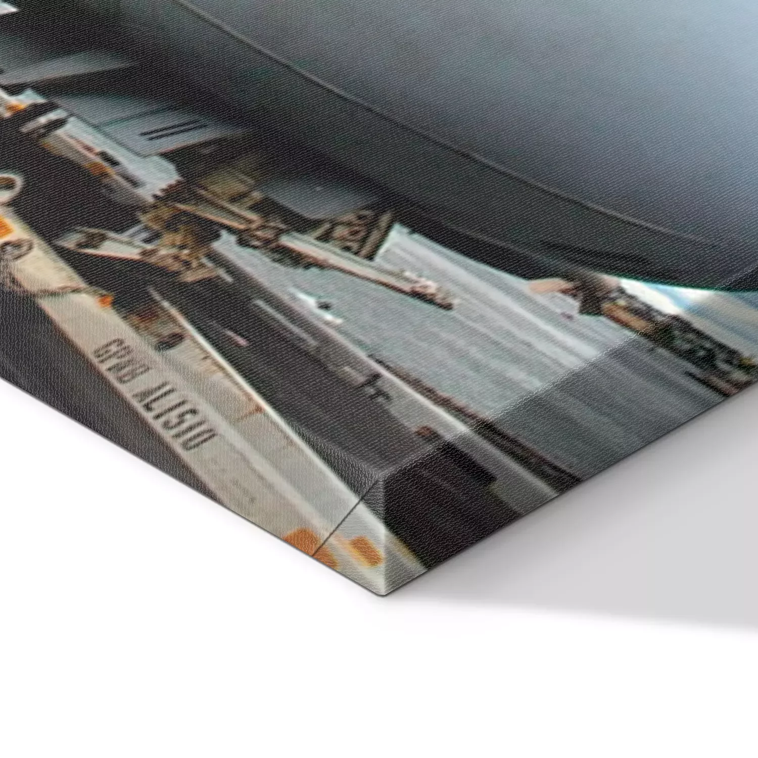 De print wordt aangebracht op hoogwaardig canvas dat op een schildersweefgetouw (spieraam) wordt gespannen. Omdat de print de zijranden bedekt, hoeft het ontwerp niet met een extra kader te worden omlijst. Wij raden ook composities aan die uit meerdere foto's bestaan en zo een coherente compositie vormen.