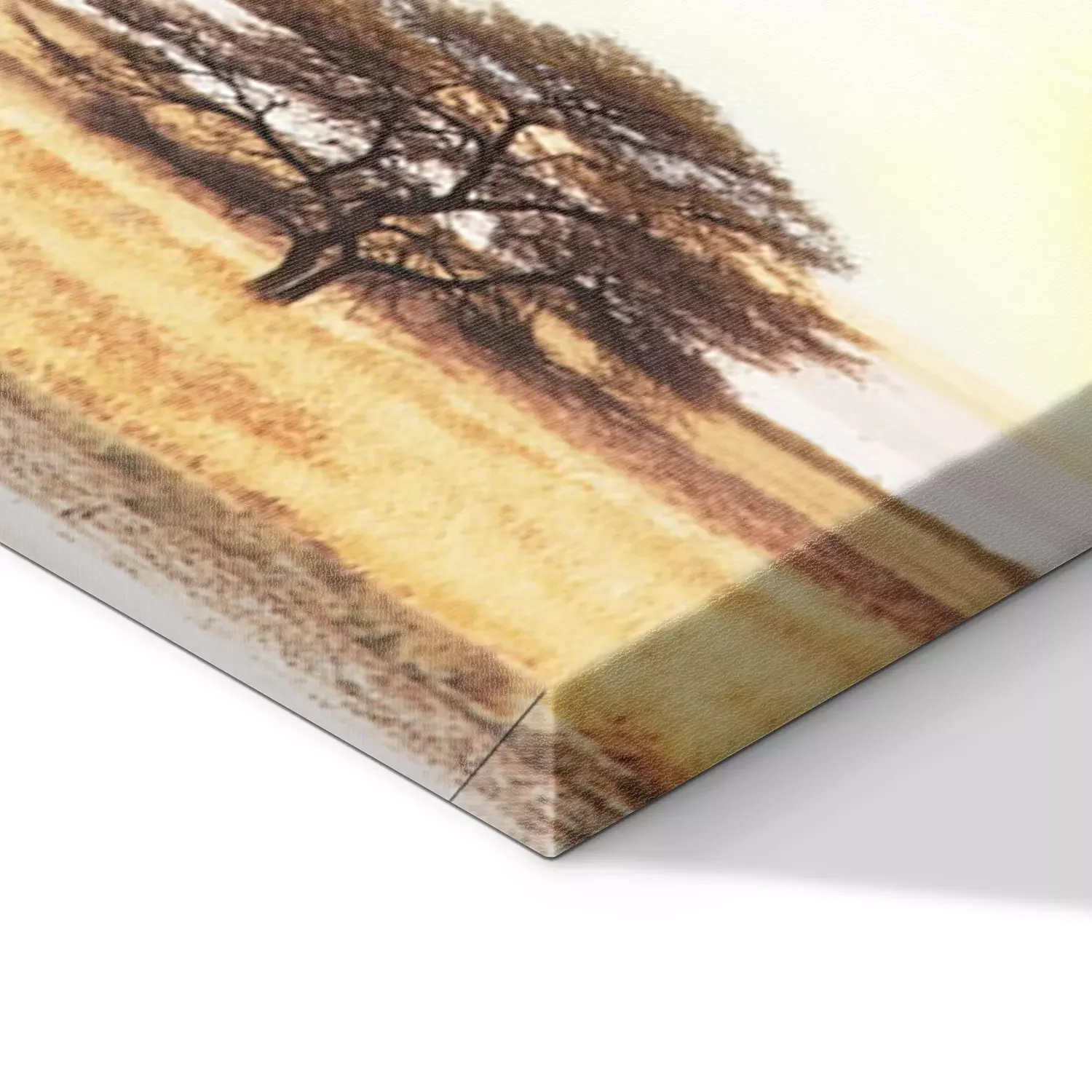 De print wordt aangebracht op hoogwaardig canvas dat op een schildersweefgetouw (spieraam) wordt gespannen. Omdat de print de zijranden bedekt, hoeft het ontwerp niet met een extra kader te worden omlijst. Wij raden ook composities aan die uit meerdere foto's bestaan en zo een coherente compositie vormen.