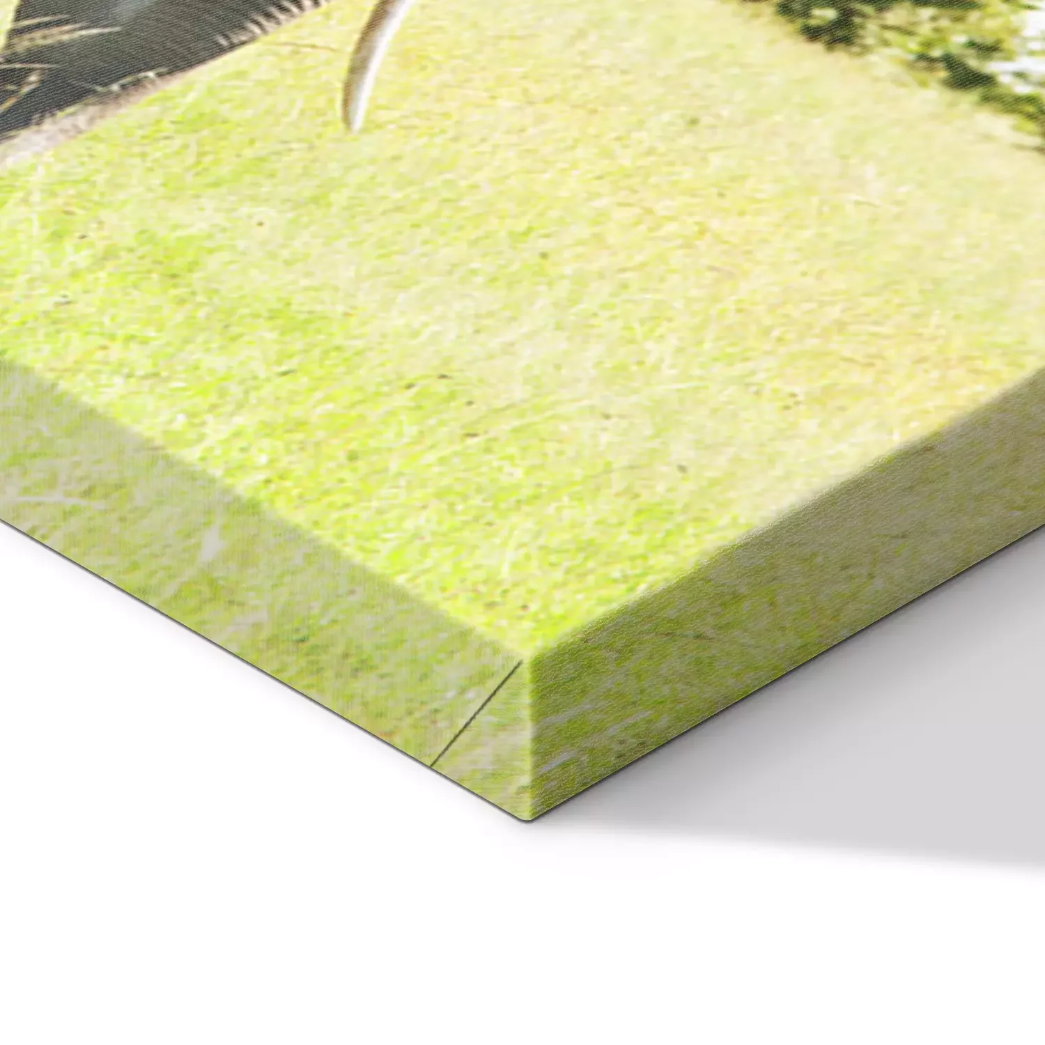 De print wordt aangebracht op hoogwaardig canvas dat op een schildersweefgetouw (spieraam) wordt gespannen. Omdat de print de zijranden bedekt, hoeft het ontwerp niet met een extra kader te worden omlijst. Wij raden ook composities aan die uit meerdere foto's bestaan en zo een coherente compositie vormen.