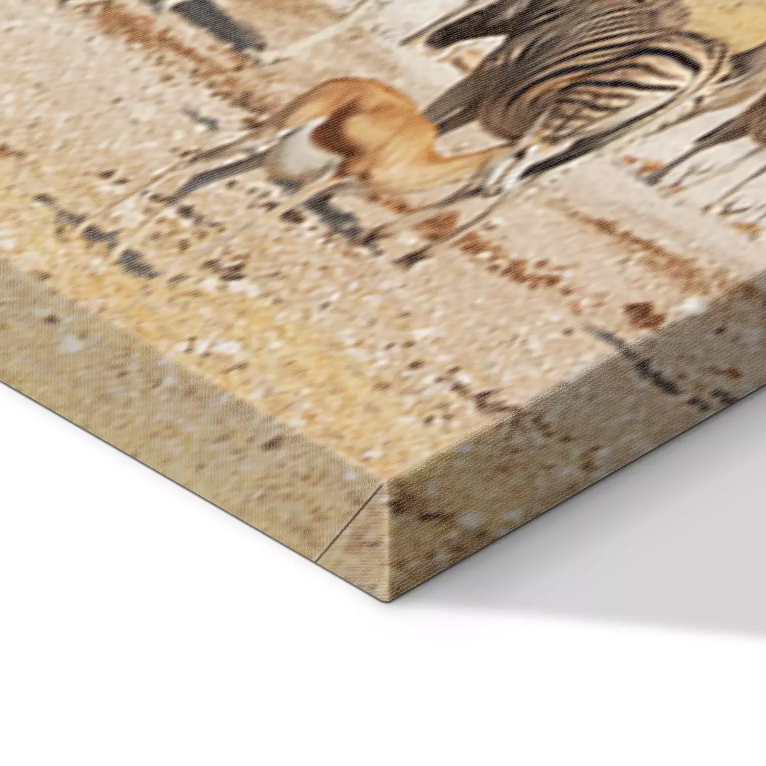 De print wordt aangebracht op hoogwaardig canvas dat op een schildersweefgetouw (spieraam) wordt gespannen. Omdat de print de zijranden bedekt, hoeft het ontwerp niet met een extra kader te worden omlijst. Wij raden ook composities aan die uit meerdere foto's bestaan en zo een coherente compositie vormen.