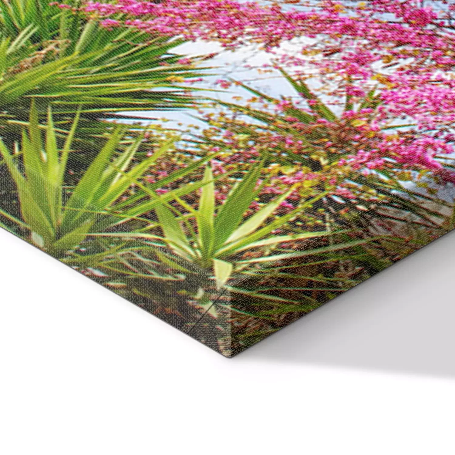De print wordt aangebracht op hoogwaardig canvas dat op een schildersweefgetouw (spieraam) wordt gespannen. Omdat de print de zijranden bedekt, hoeft het ontwerp niet met een extra kader te worden omlijst. Wij raden ook composities aan die uit meerdere foto's bestaan en zo een coherente compositie vormen.