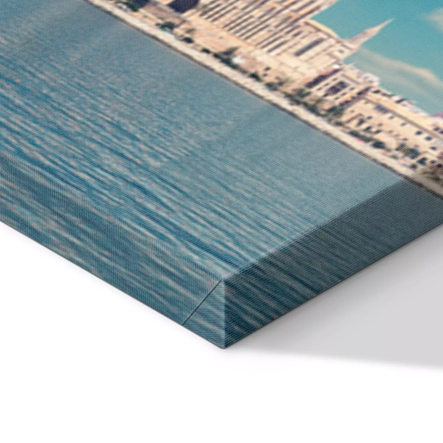 De print wordt aangebracht op hoogwaardig canvas dat op een schildersweefgetouw (spieraam) wordt gespannen. Omdat de print de zijranden bedekt, hoeft het ontwerp niet met een extra kader te worden omlijst. Wij raden ook composities aan die uit meerdere foto's bestaan en zo een coherente compositie vormen.