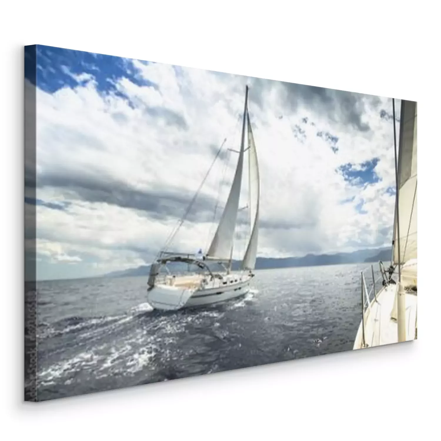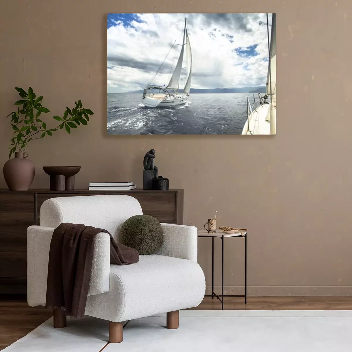 Luxe jachten op Sailing regatta. Zeilen in de wind door de golven in de zee.