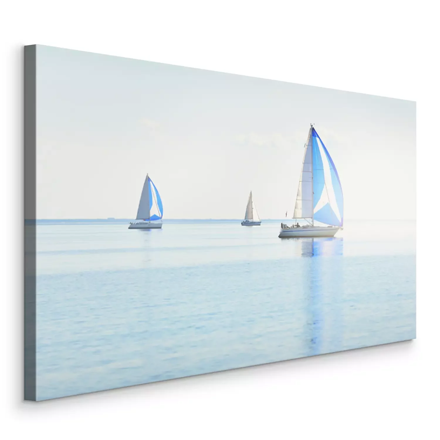 Canvas Sailing yacht regatta. Modern sailboats racing with blue spinnaker sails. Clear summer day. Kiel, Germany. Sport and recreation, transportation, private wessel, vacations