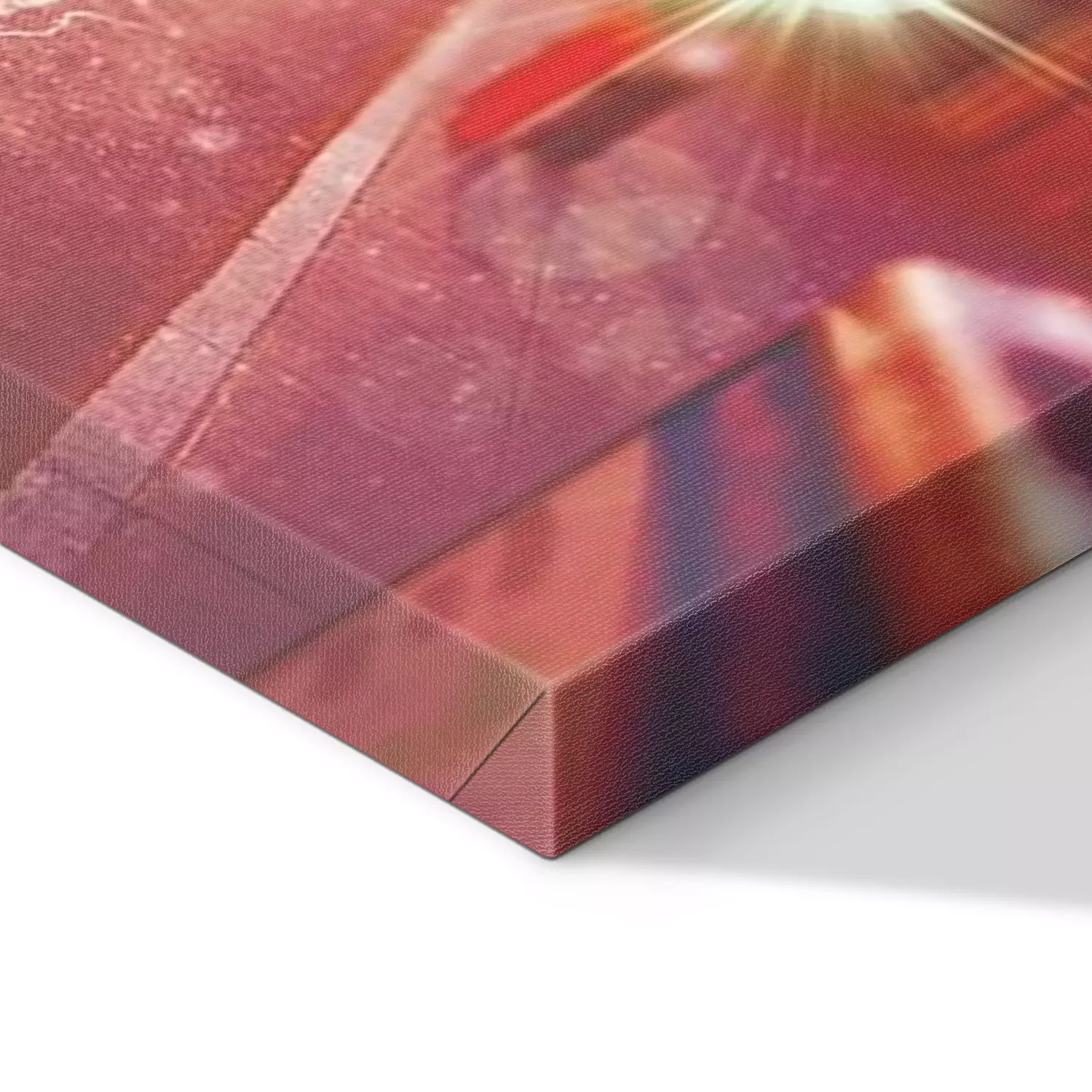 De print wordt aangebracht op hoogwaardig canvas dat op een schildersweefgetouw (spieraam) wordt gespannen. Omdat de print de zijranden bedekt, hoeft het ontwerp niet met een extra kader te worden omlijst. Wij raden ook composities aan die uit meerdere foto's bestaan en zo een coherente compositie vormen.