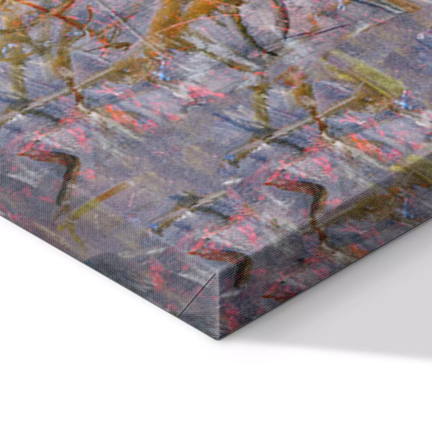 De print wordt aangebracht op hoogwaardig canvas dat op een schildersweefgetouw (spieraam) wordt gespannen. Omdat de print de zijranden bedekt, hoeft het ontwerp niet met een extra kader te worden omlijst. Wij raden ook composities aan die uit meerdere foto's bestaan en zo een coherente compositie vormen.
