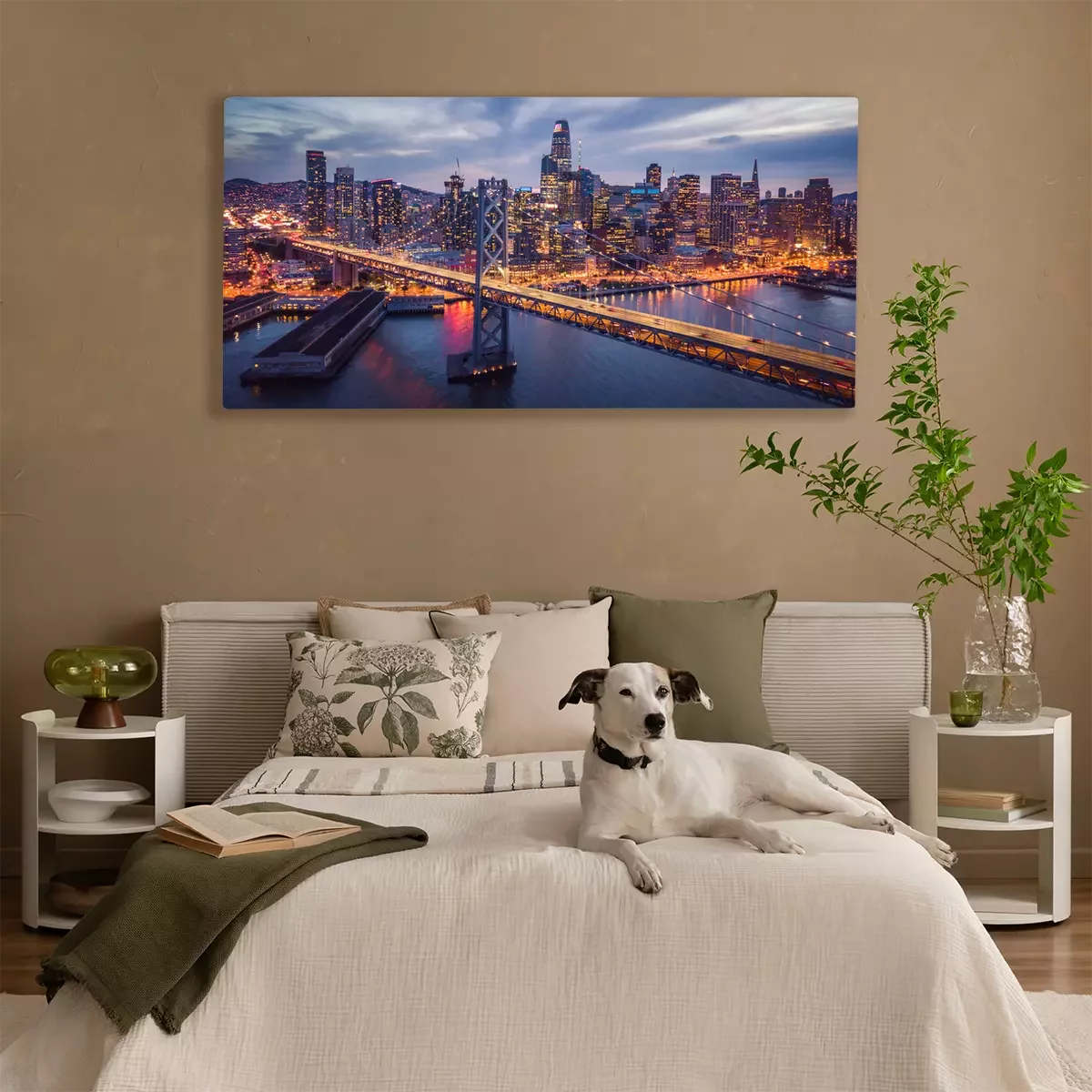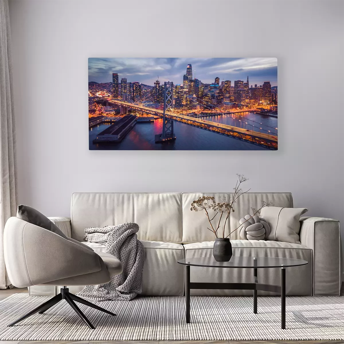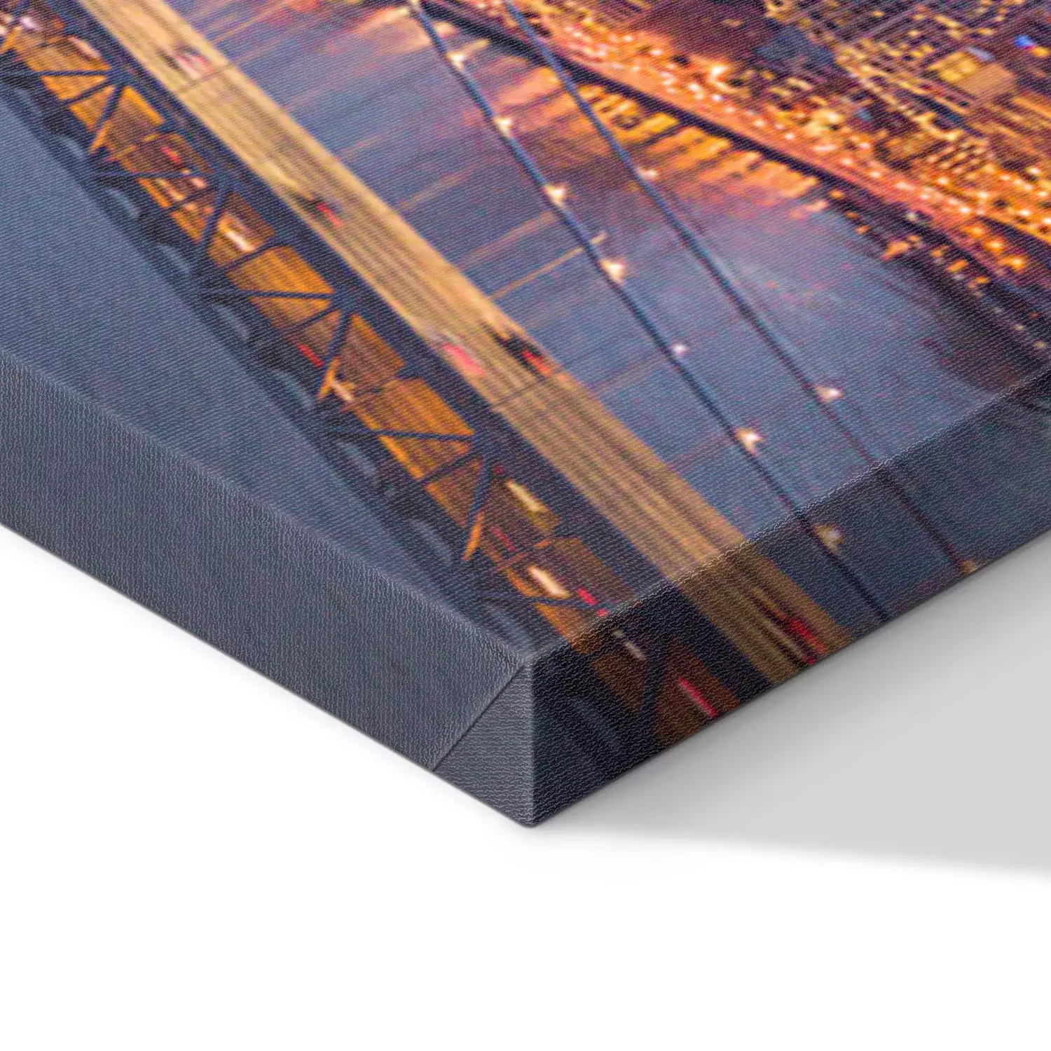 De print wordt aangebracht op hoogwaardig canvas dat op een schildersweefgetouw (spieraam) wordt gespannen. Omdat de print de zijranden bedekt, hoeft het ontwerp niet met een extra kader te worden omlijst. Wij raden ook composities aan die uit meerdere foto's bestaan en zo een coherente compositie vormen.