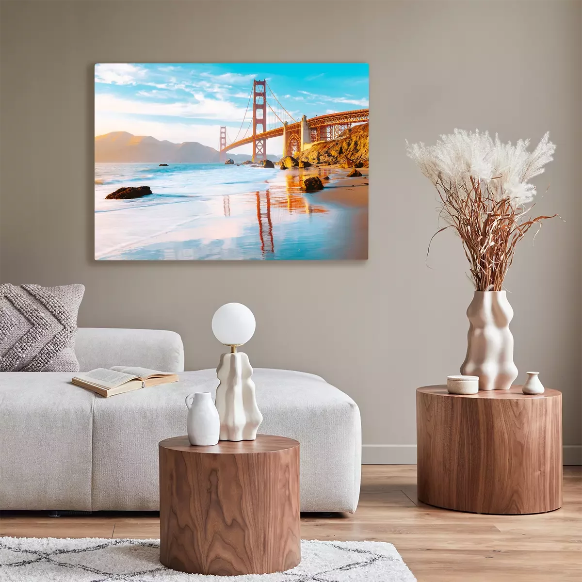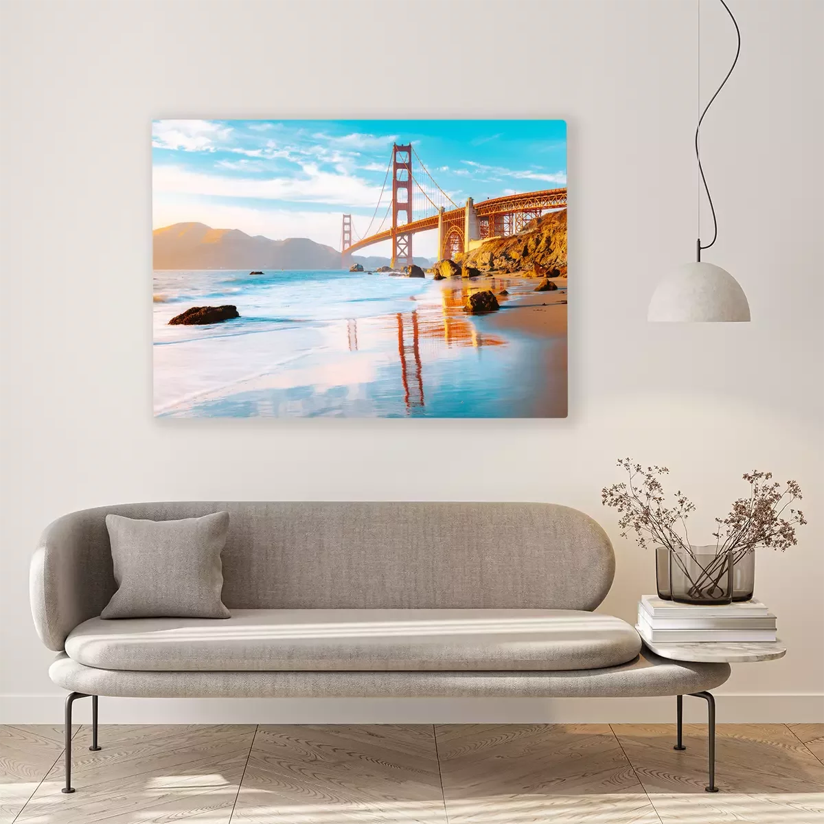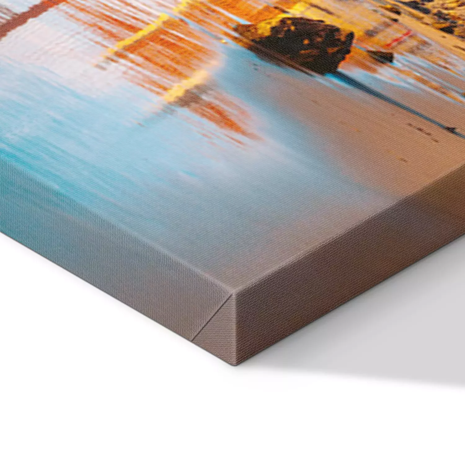 De print wordt aangebracht op hoogwaardig canvas dat op een schildersweefgetouw (spieraam) wordt gespannen. Omdat de print de zijranden bedekt, hoeft het ontwerp niet met een extra kader te worden omlijst. Wij raden ook composities aan die uit meerdere foto's bestaan en zo een coherente compositie vormen.