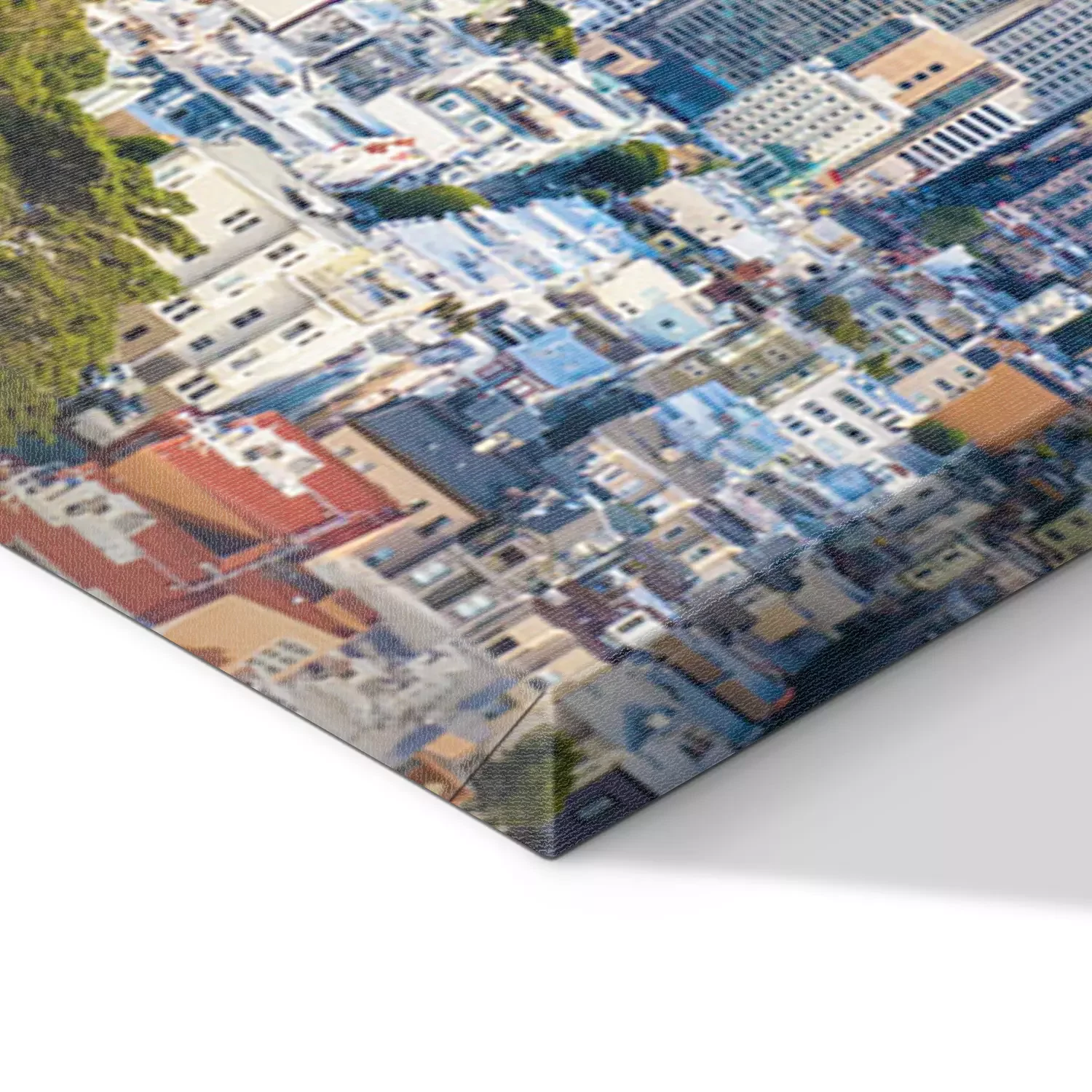De print wordt aangebracht op hoogwaardig canvas dat op een schildersweefgetouw (spieraam) wordt gespannen. Omdat de print de zijranden bedekt, hoeft het ontwerp niet met een extra kader te worden omlijst. Wij raden ook composities aan die uit meerdere foto's bestaan en zo een coherente compositie vormen.