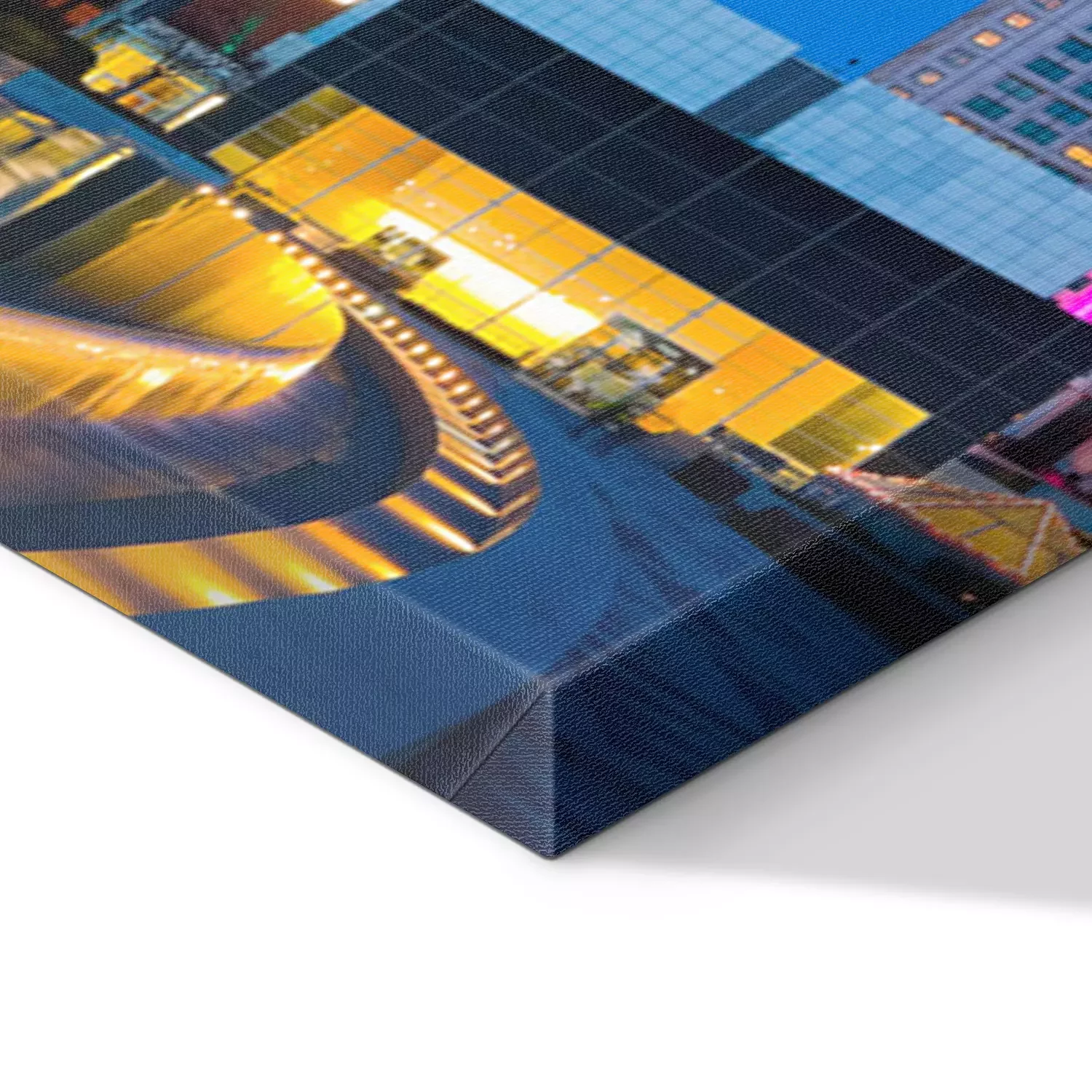De print wordt aangebracht op hoogwaardig canvas dat op een schildersweefgetouw (spieraam) wordt gespannen. Omdat de print de zijranden bedekt, hoeft het ontwerp niet met een extra kader te worden omlijst. Wij raden ook composities aan die uit meerdere foto's bestaan en zo een coherente compositie vormen.