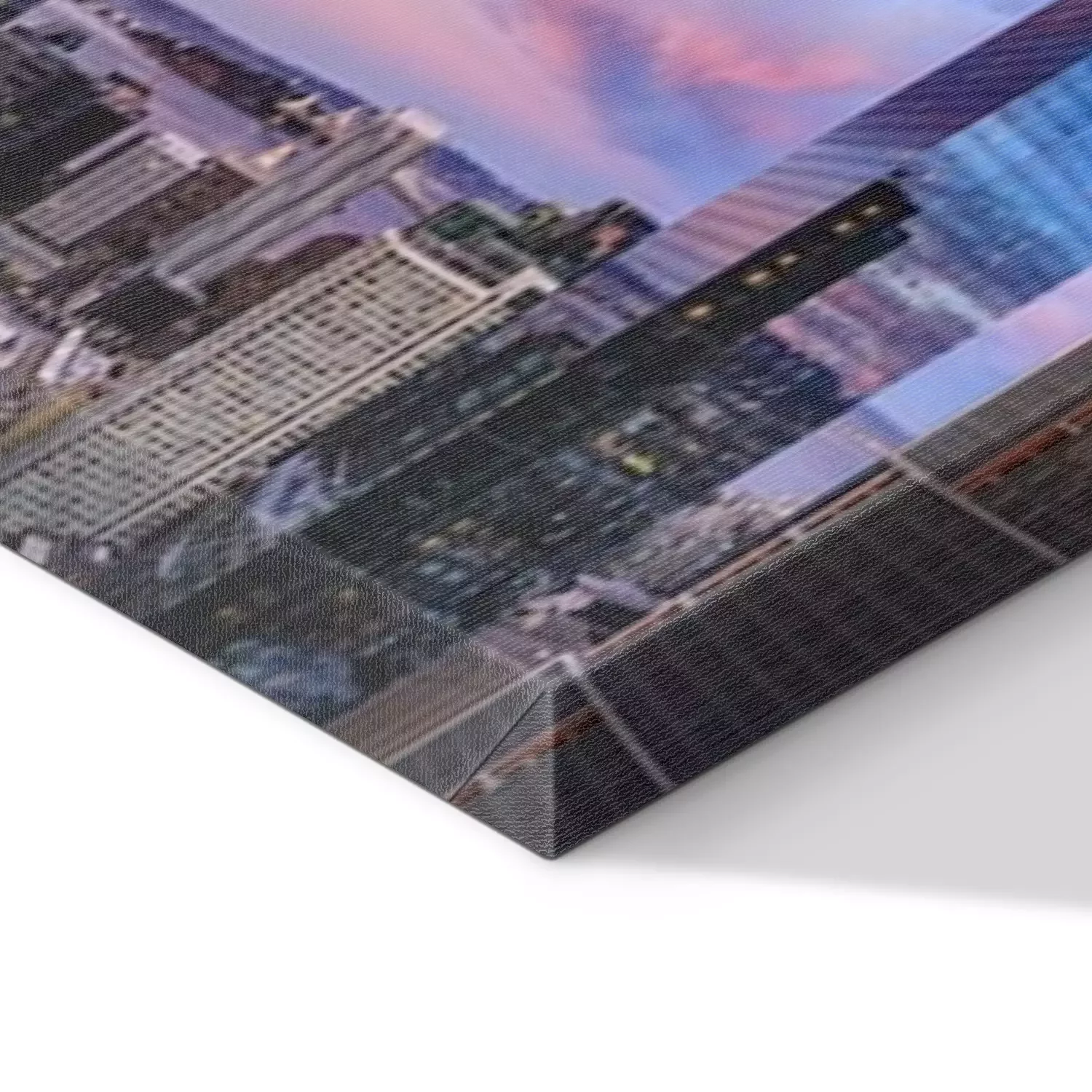 De print wordt aangebracht op hoogwaardig canvas dat op een schildersweefgetouw (spieraam) wordt gespannen. Omdat de print de zijranden bedekt, hoeft het ontwerp niet met een extra kader te worden omlijst. Wij raden ook composities aan die uit meerdere foto's bestaan en zo een coherente compositie vormen.