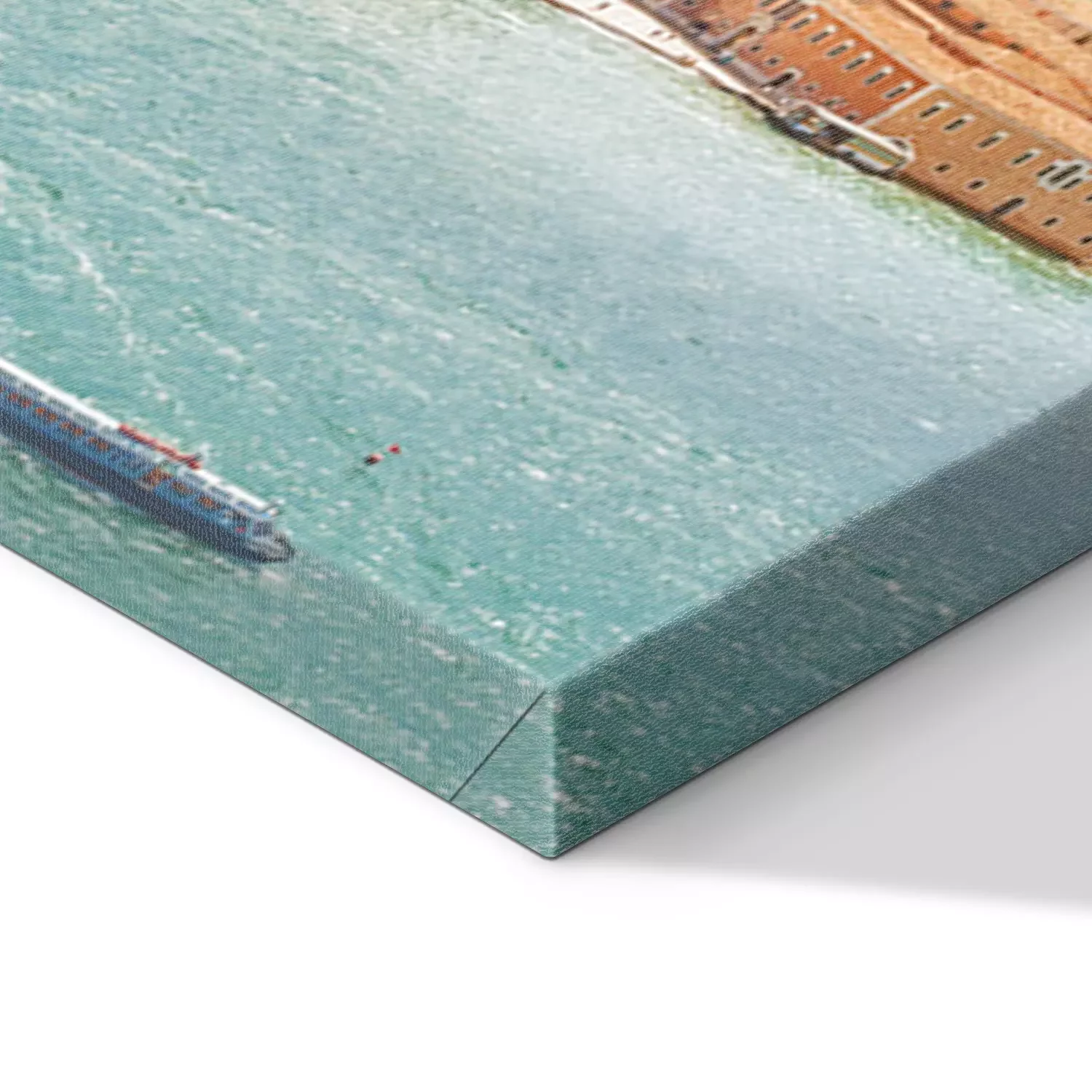 De print wordt aangebracht op hoogwaardig canvas dat op een schildersweefgetouw (spieraam) wordt gespannen. Omdat de print de zijranden bedekt, hoeft het ontwerp niet met een extra kader te worden omlijst. Wij raden ook composities aan die uit meerdere foto's bestaan en zo een coherente compositie vormen.