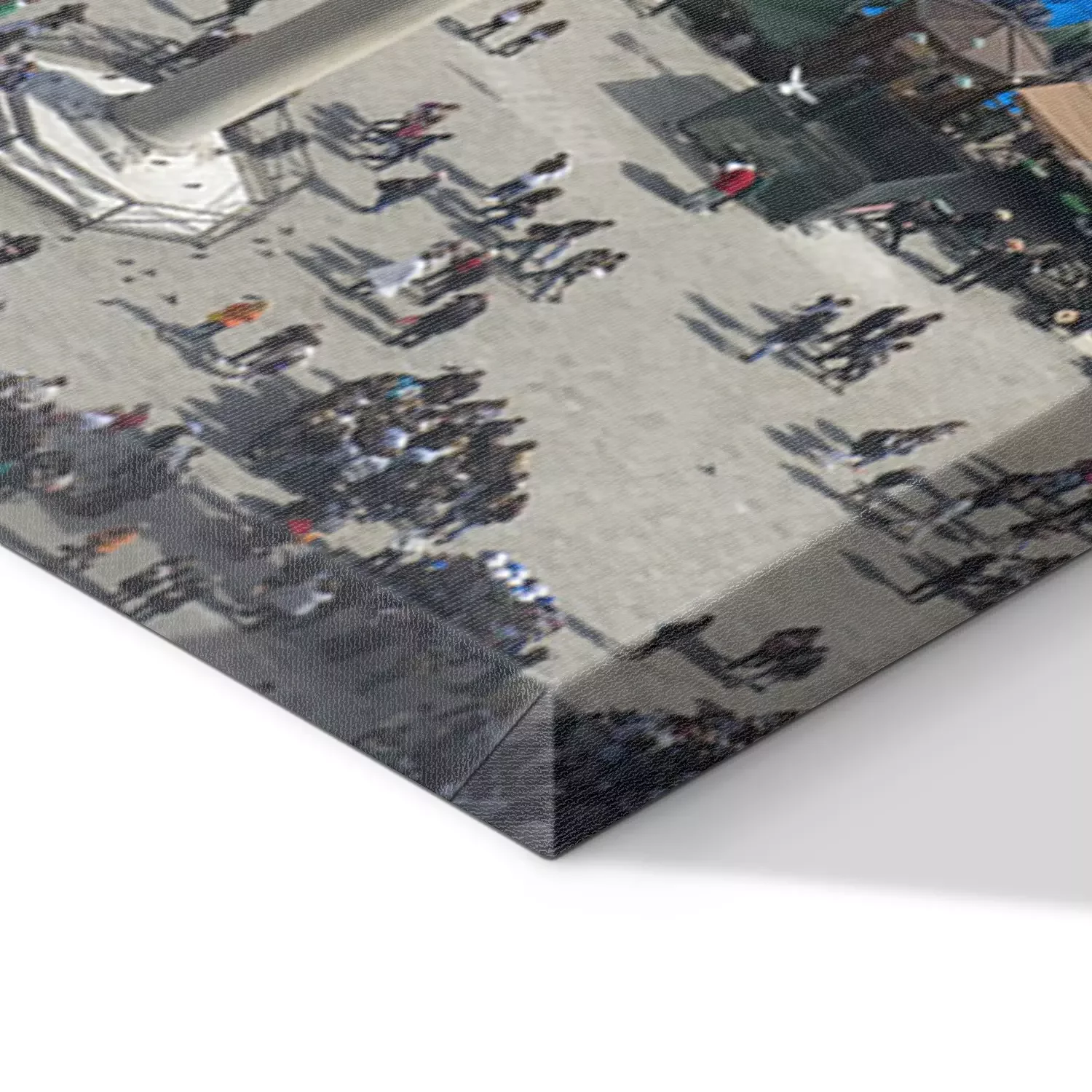 De print wordt aangebracht op hoogwaardig canvas dat op een schildersweefgetouw (spieraam) wordt gespannen. Omdat de print de zijranden bedekt, hoeft het ontwerp niet met een extra kader te worden omlijst. Wij raden ook composities aan die uit meerdere foto's bestaan en zo een coherente compositie vormen.