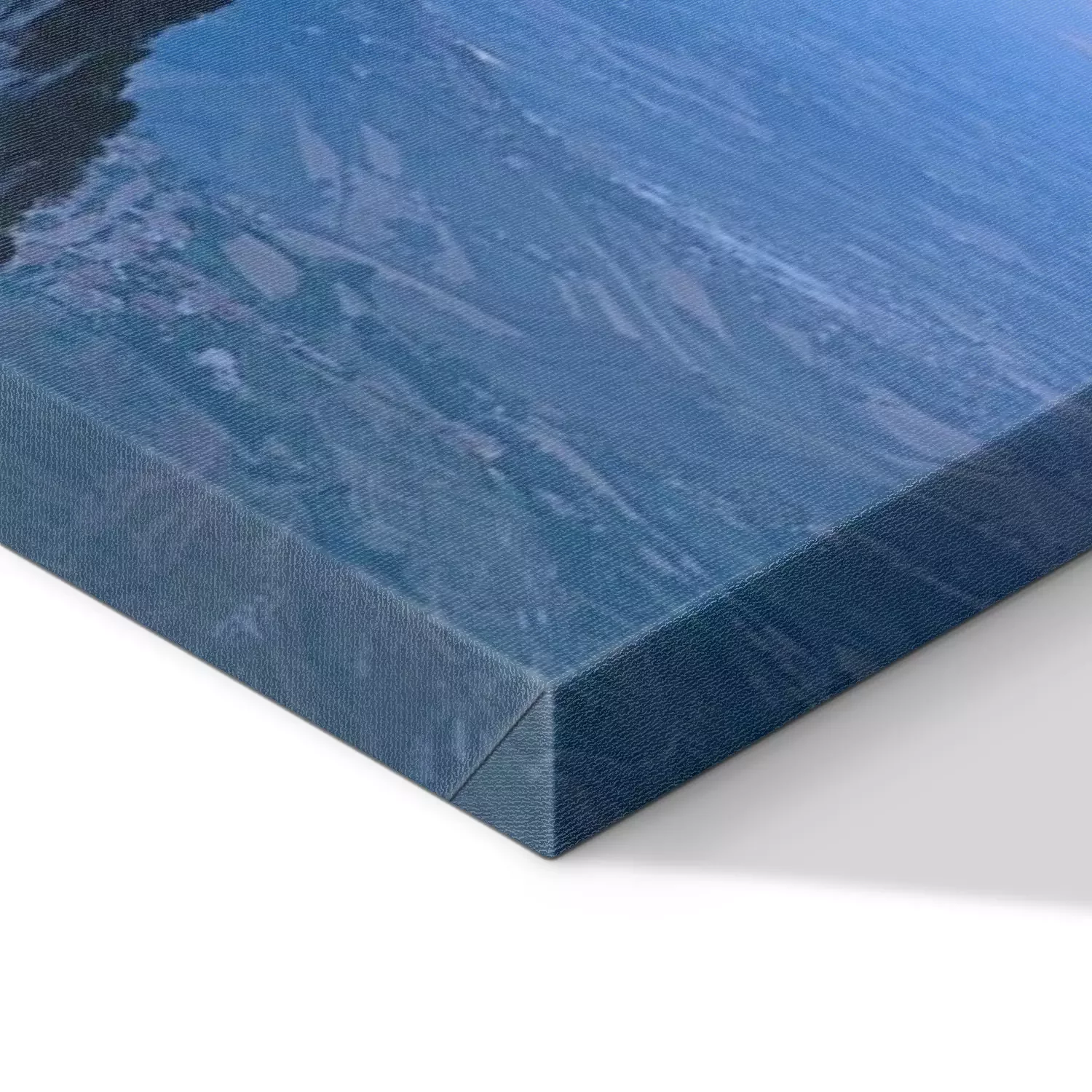 De print wordt aangebracht op hoogwaardig canvas dat op een schildersweefgetouw (spieraam) wordt gespannen. Omdat de print de zijranden bedekt, hoeft het ontwerp niet met een extra kader te worden omlijst. Wij raden ook composities aan die uit meerdere foto's bestaan en zo een coherente compositie vormen.
