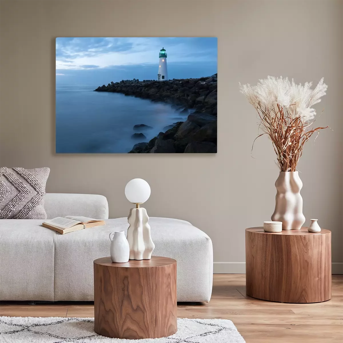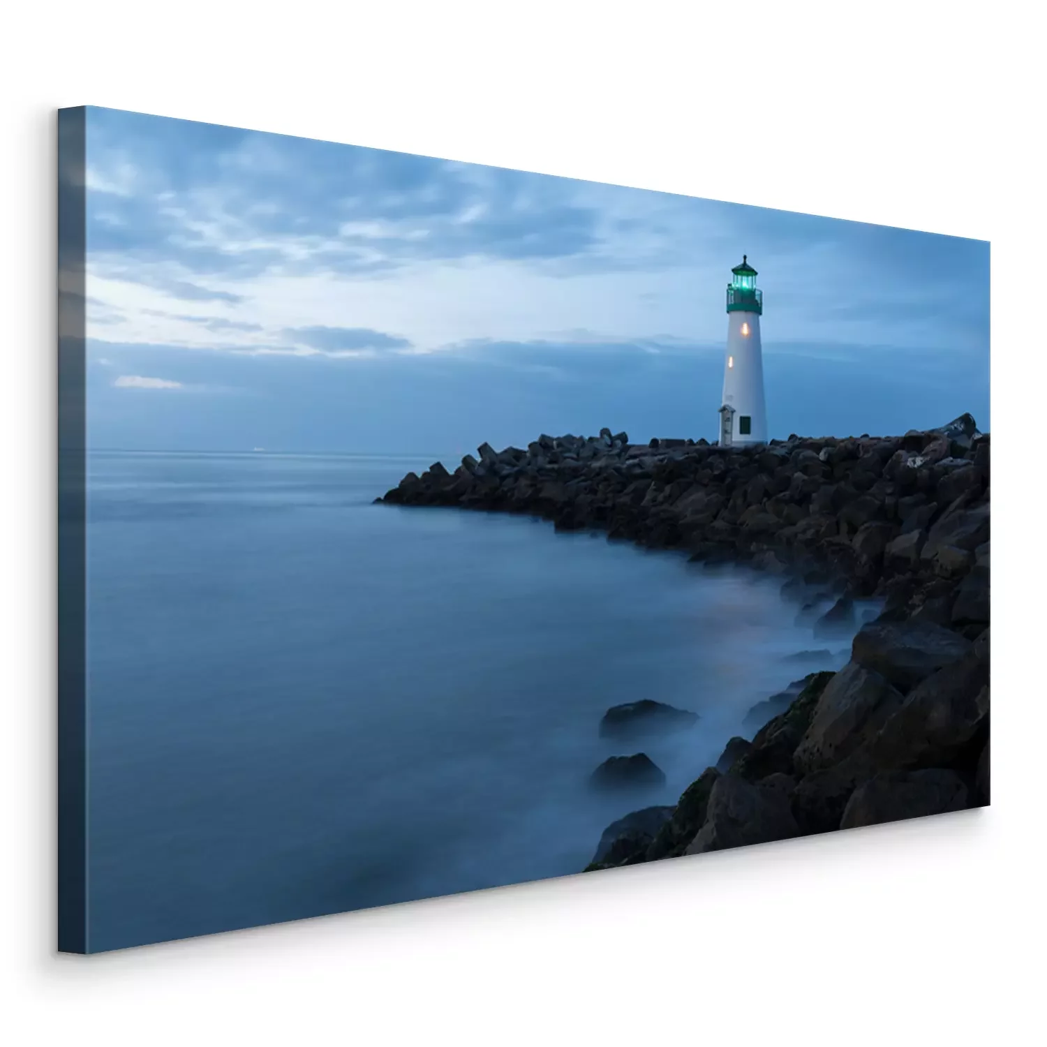 Canvas Santa Cruz Breakwater Lighthouse (Walton Lighthouse), Pacific coast, California, United States, California at sunrise Lighthouse in the Santa Cruz Small Craft Harbor in Santa Cruz, California, USA