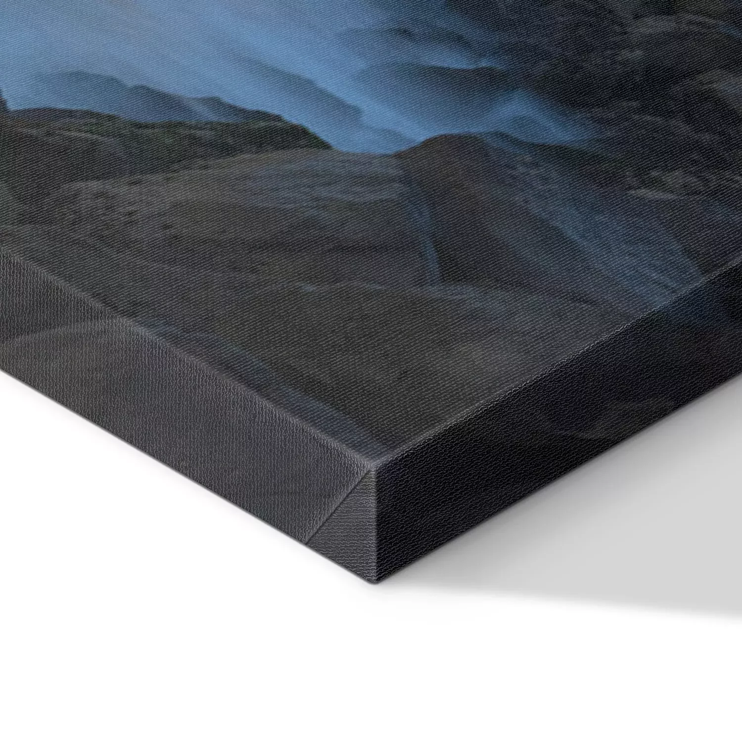 De print wordt aangebracht op hoogwaardig canvas dat op een schildersweefgetouw (spieraam) wordt gespannen. Omdat de print de zijranden bedekt, hoeft het ontwerp niet met een extra kader te worden omlijst. Wij raden ook composities aan die uit meerdere foto's bestaan en zo een coherente compositie vormen.