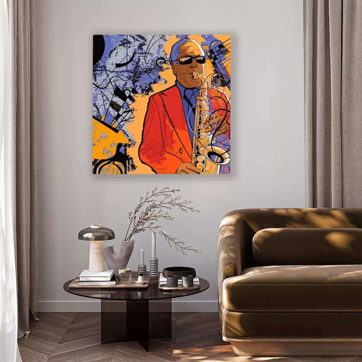 Canvas: saxofonist op een grunge achtergrond