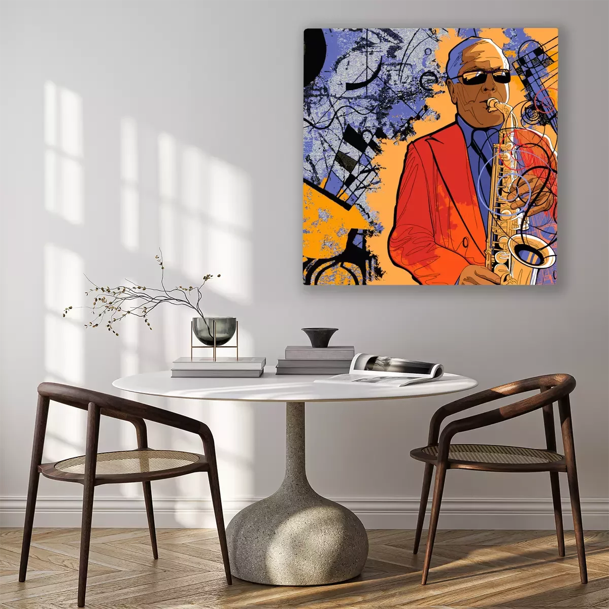 saxofonist op een kleurrijke achtergrond
